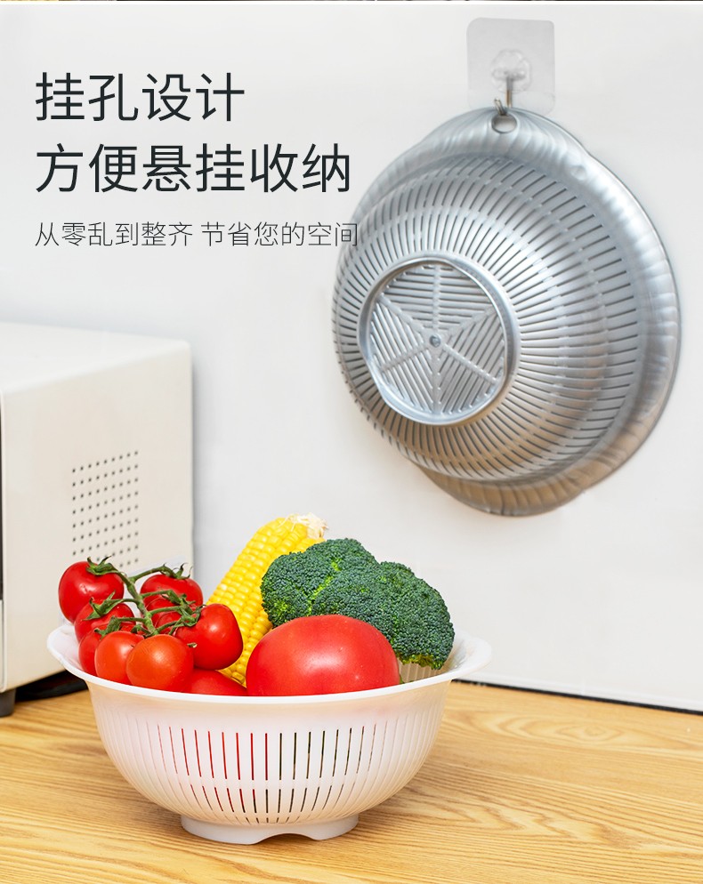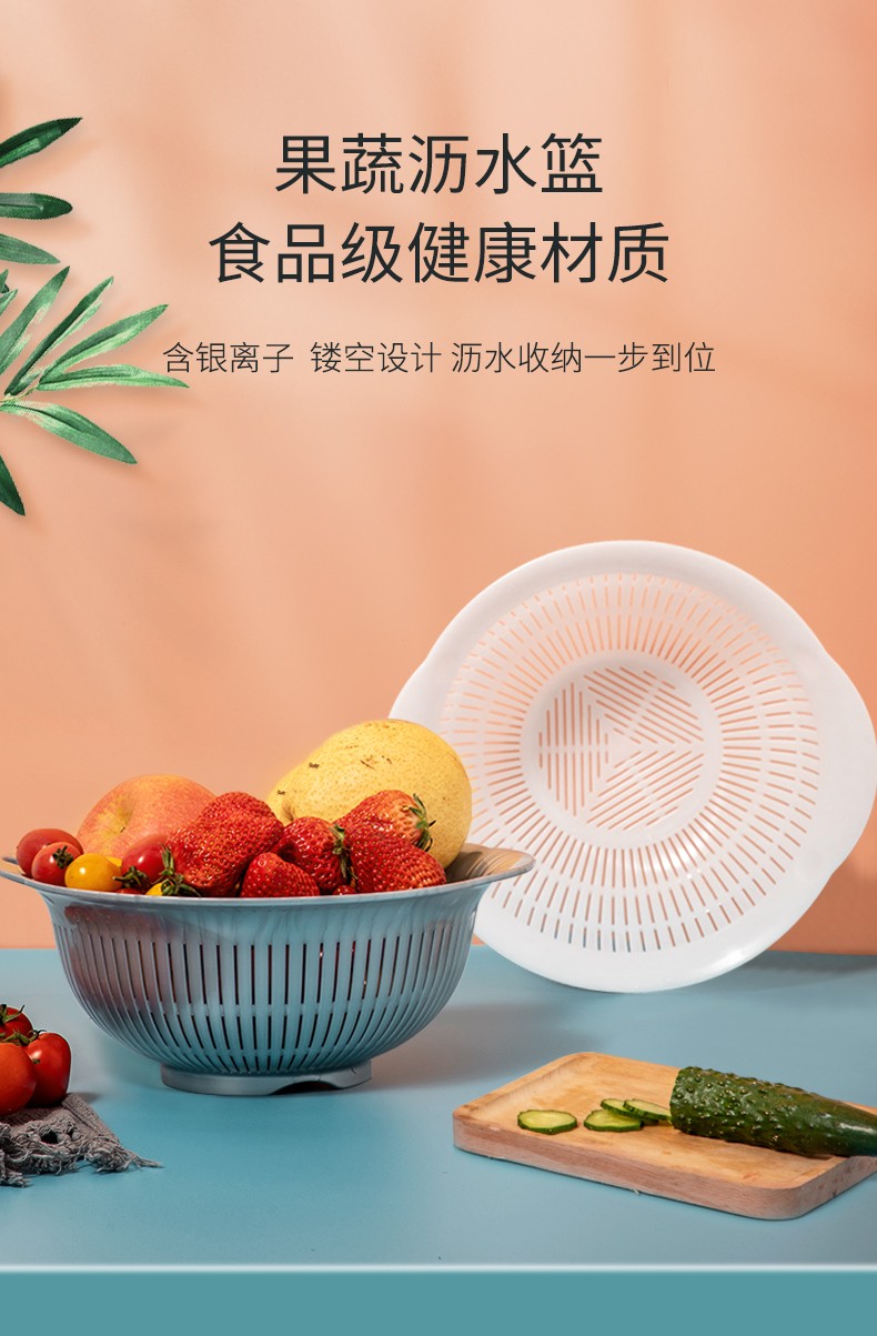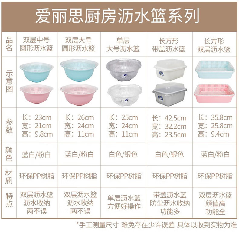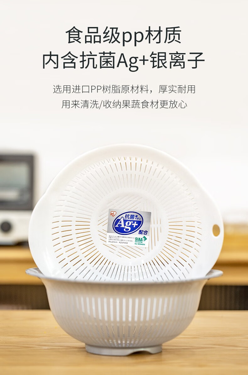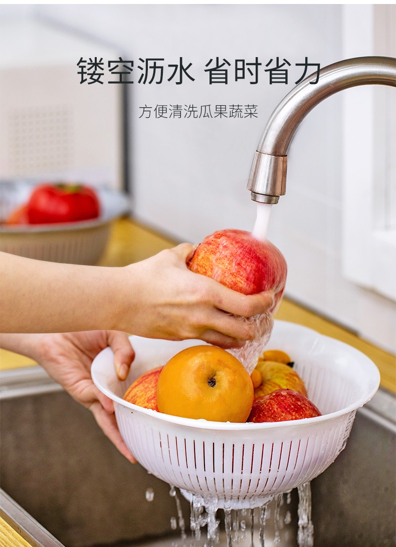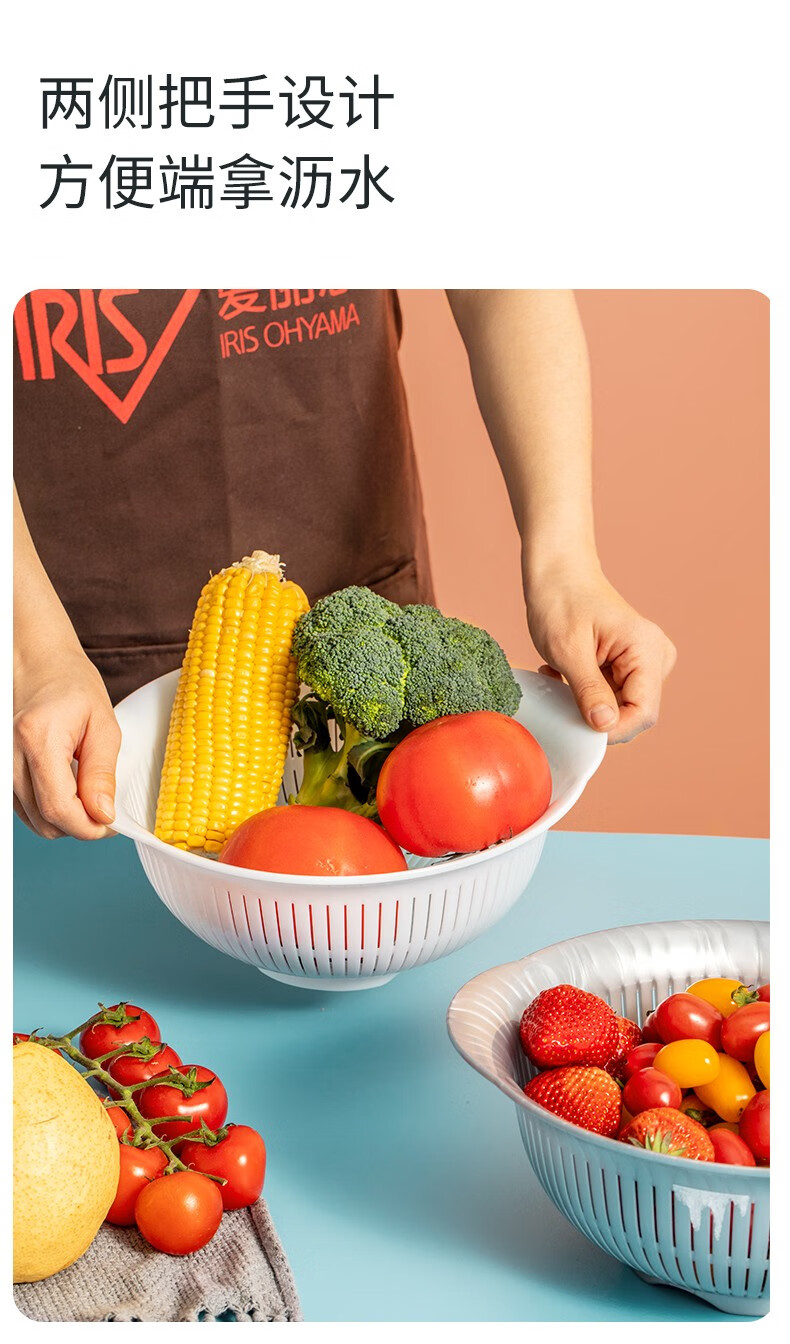 IRIS drain basin, vegetable basin, drain basket, drain tray, fruit washing tool, vegetable basket, kitchen fruit plate, retractable rack, double-layer large, pink, diameter about 26cm