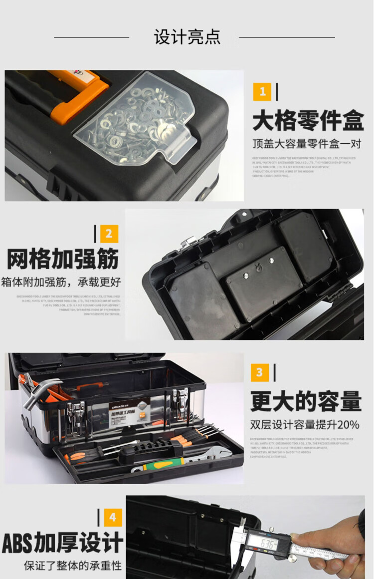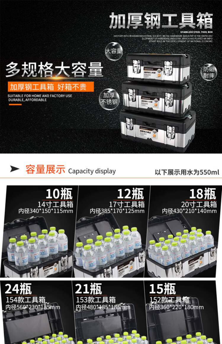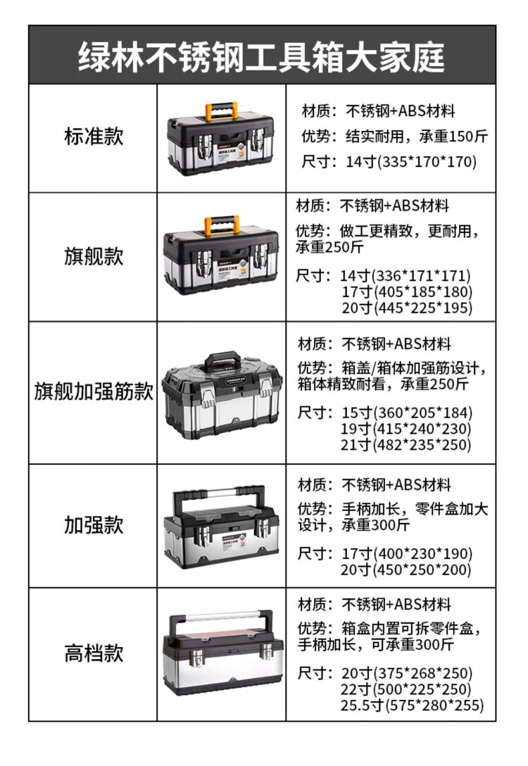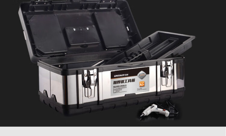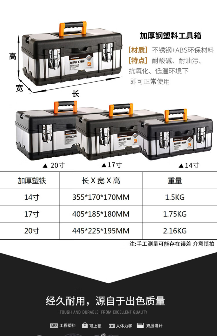 GREENER stainless steel tool box, industrial-grade multi-functional vehicle-mounted large hardware portable electrician household tool storage box, high-end 27-inch stainless steel tool box