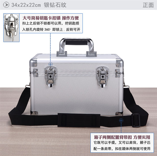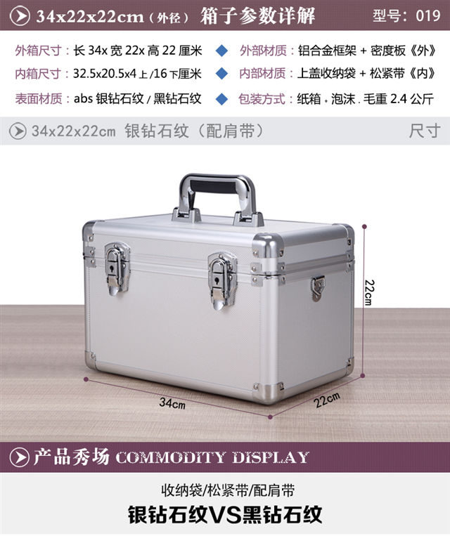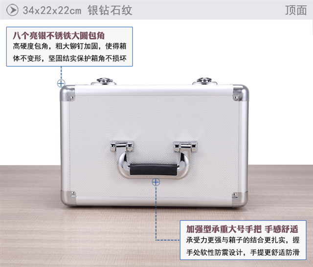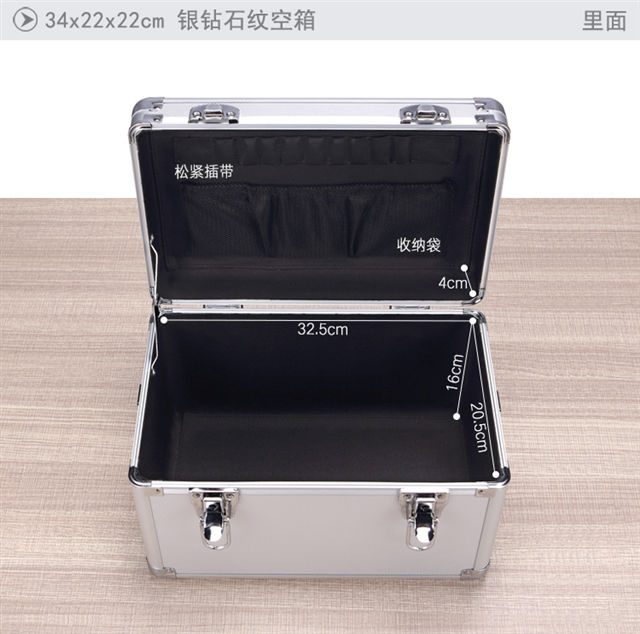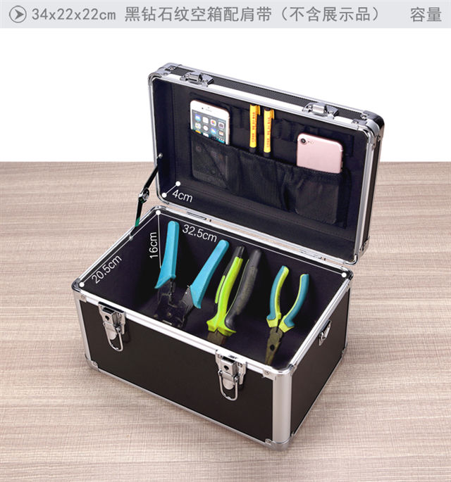 Chiming aluminum alloy tool box small suitcase equipment instrument box document storage box household storage box event prop box inspection tool box 019 black box filled with cotton 34x22x22cm