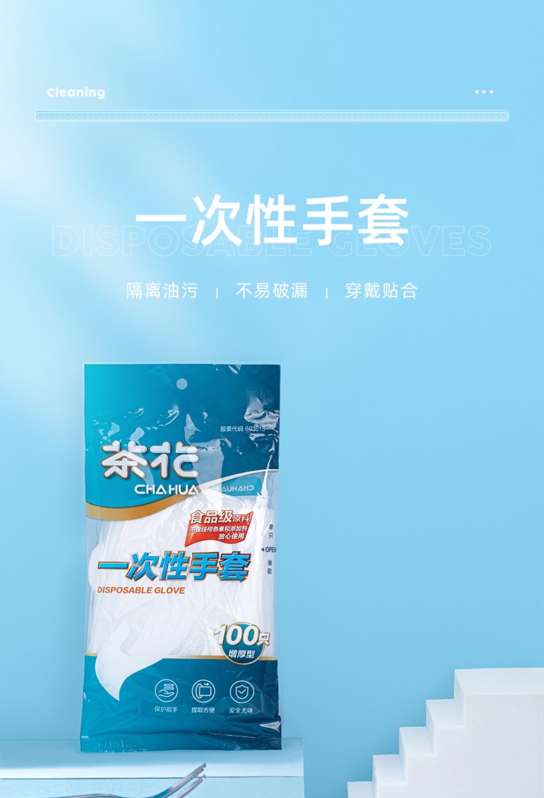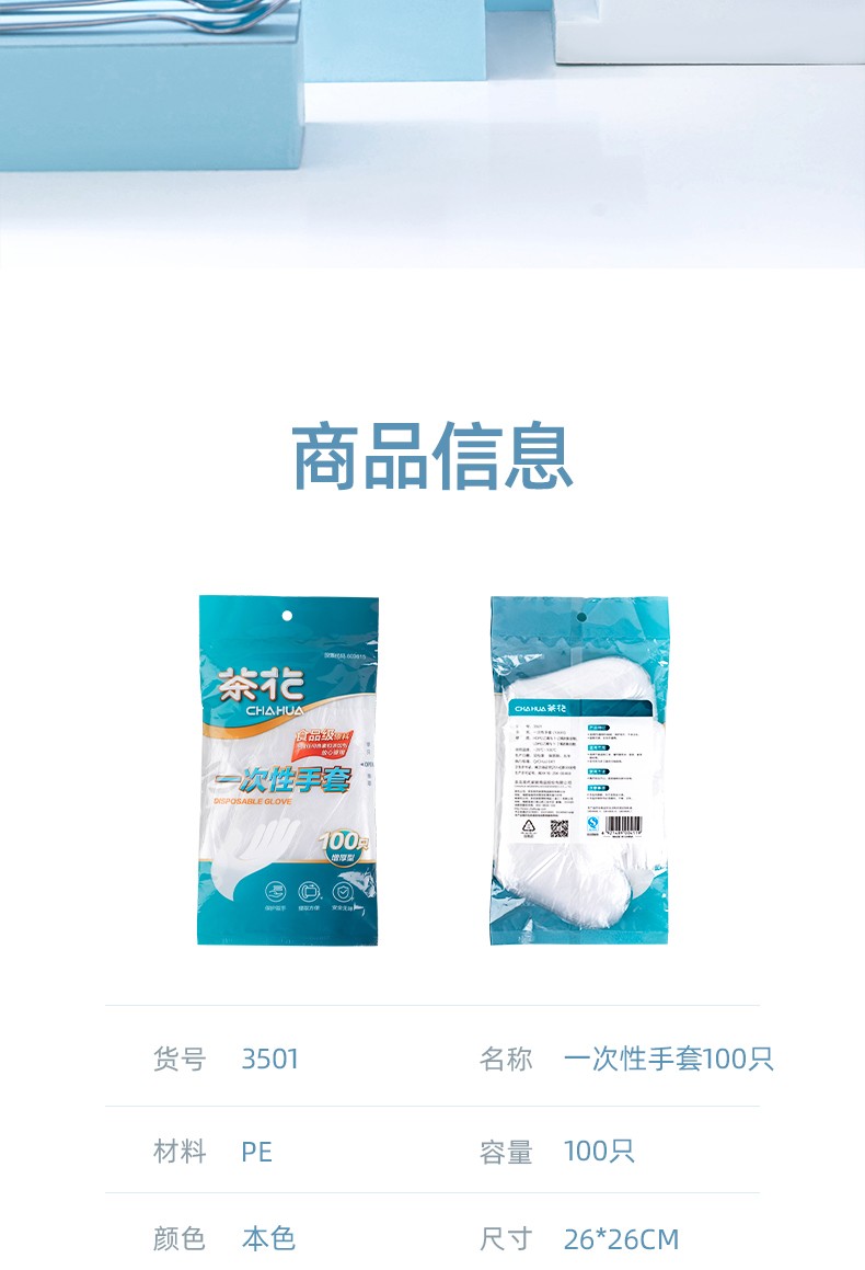 Camellia disposable gloves food hygiene transparent removable gloves 100 pieces, 300 pieces, 3 packs in total