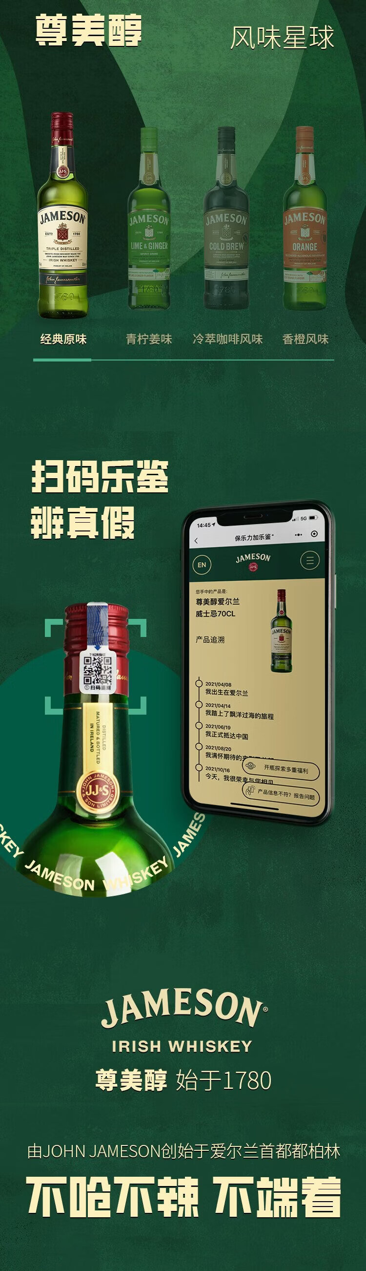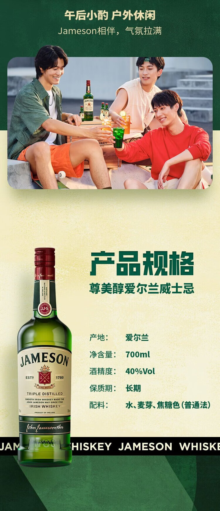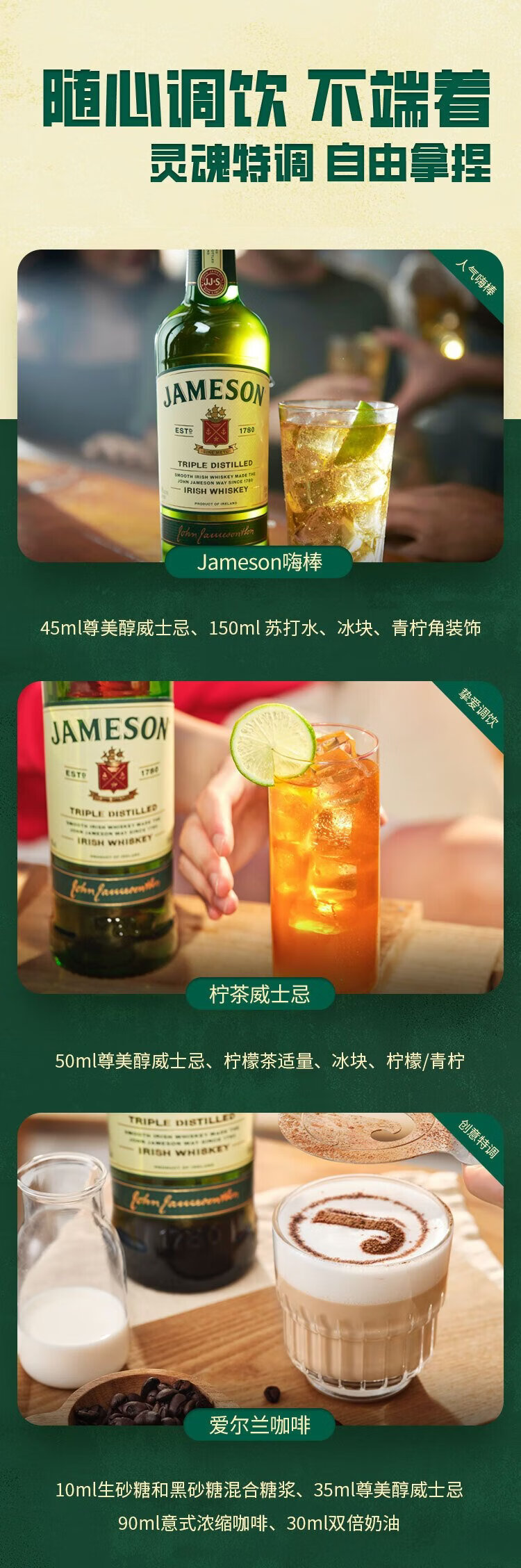 Jameson Irish blended imported whiskey foreign wine 700ml whiskey floral and fruity aroma