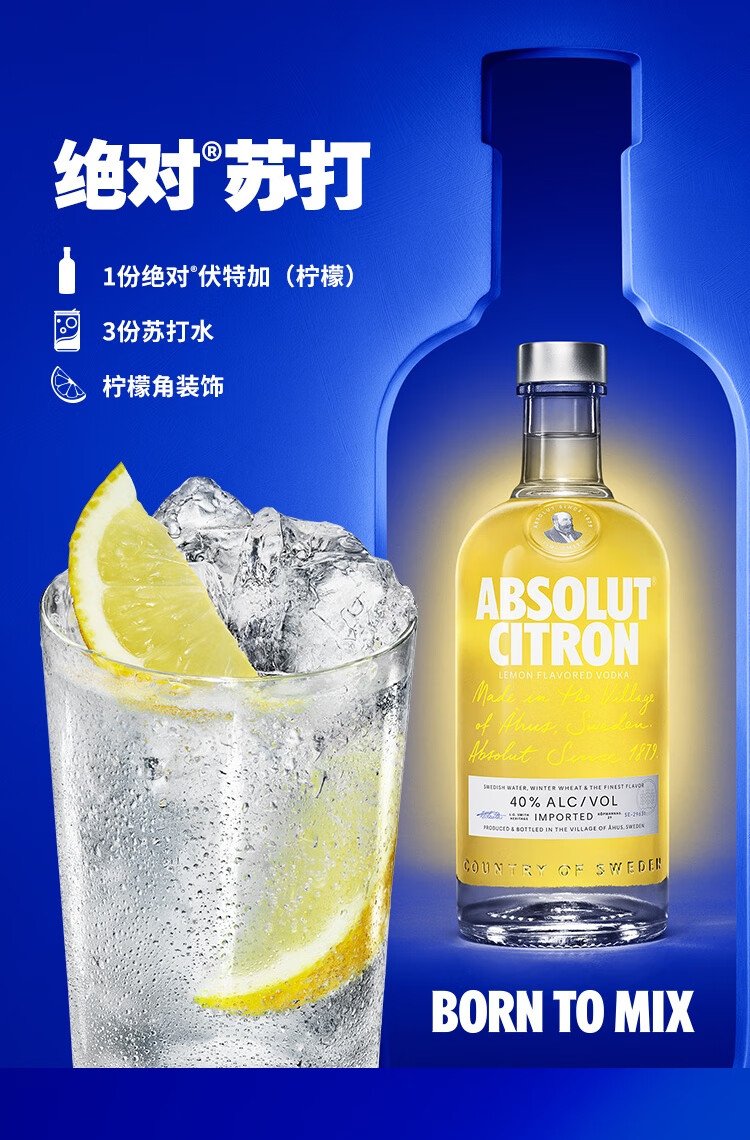 Absolut Vodka Liquor 40% Lemon Flavor 700ml New Year Gift