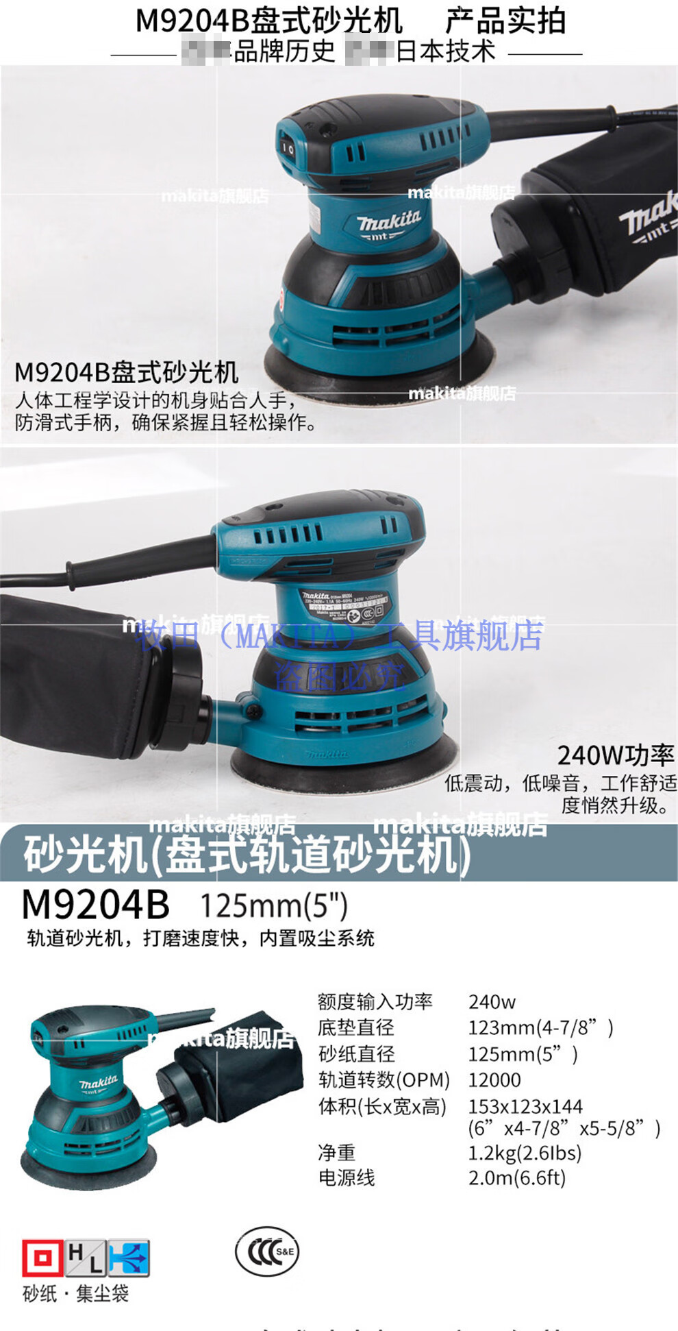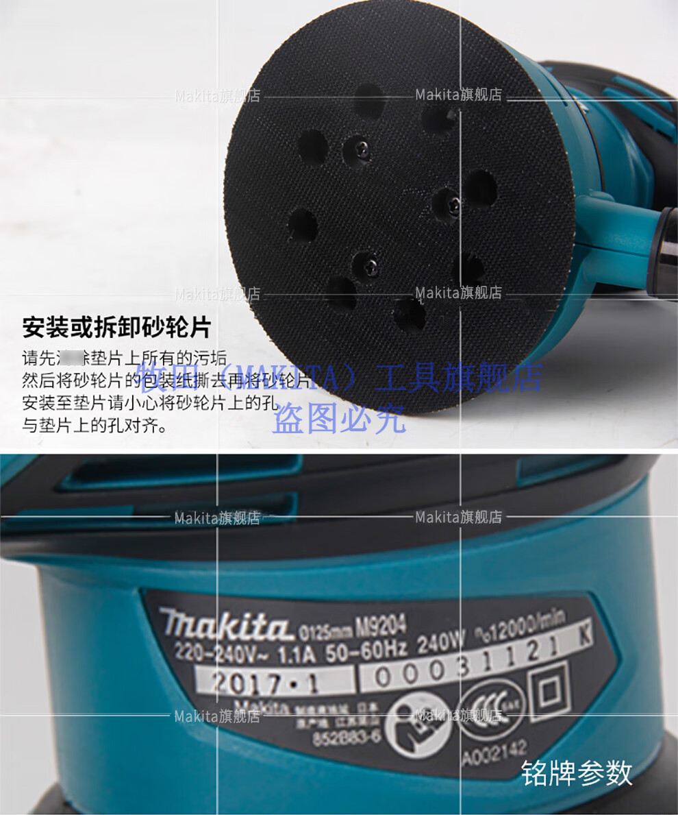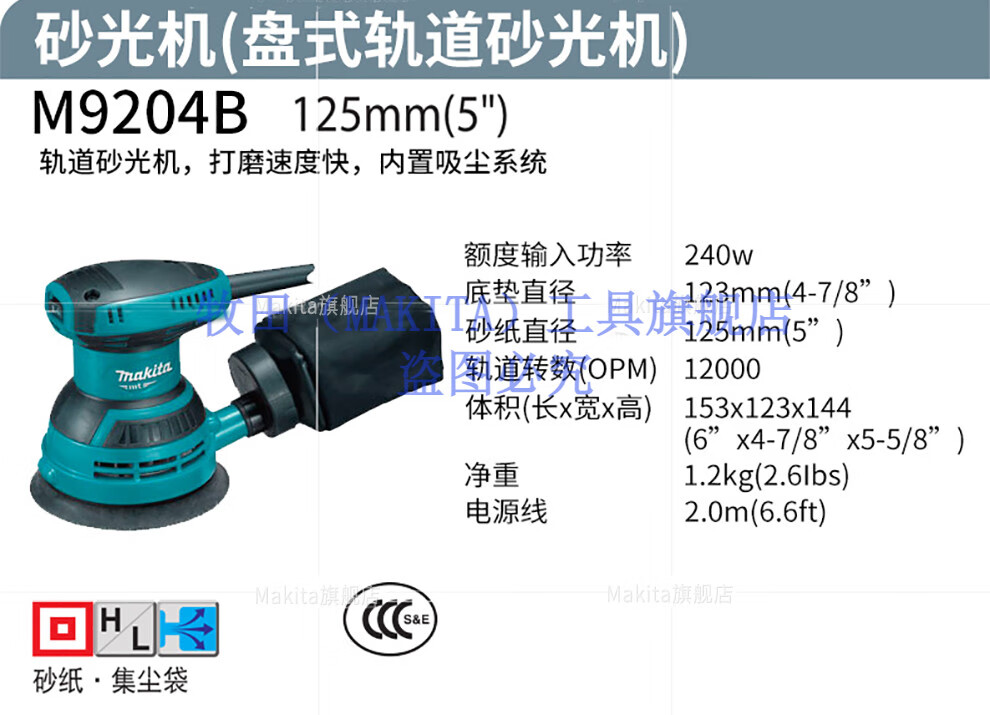 Makita Japan Makita sander with dust collection grinder 125mm wood furniture sandpaper machine M9204B power tool M9204B plastic box + sandpaper + grinding disc