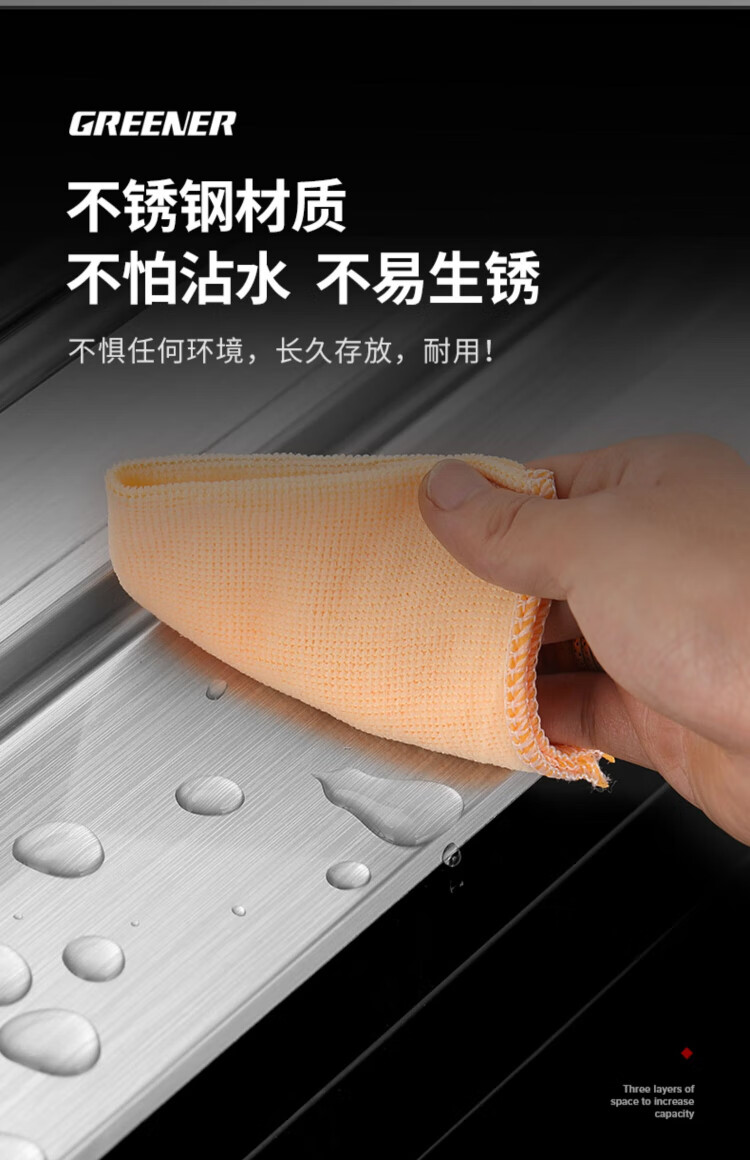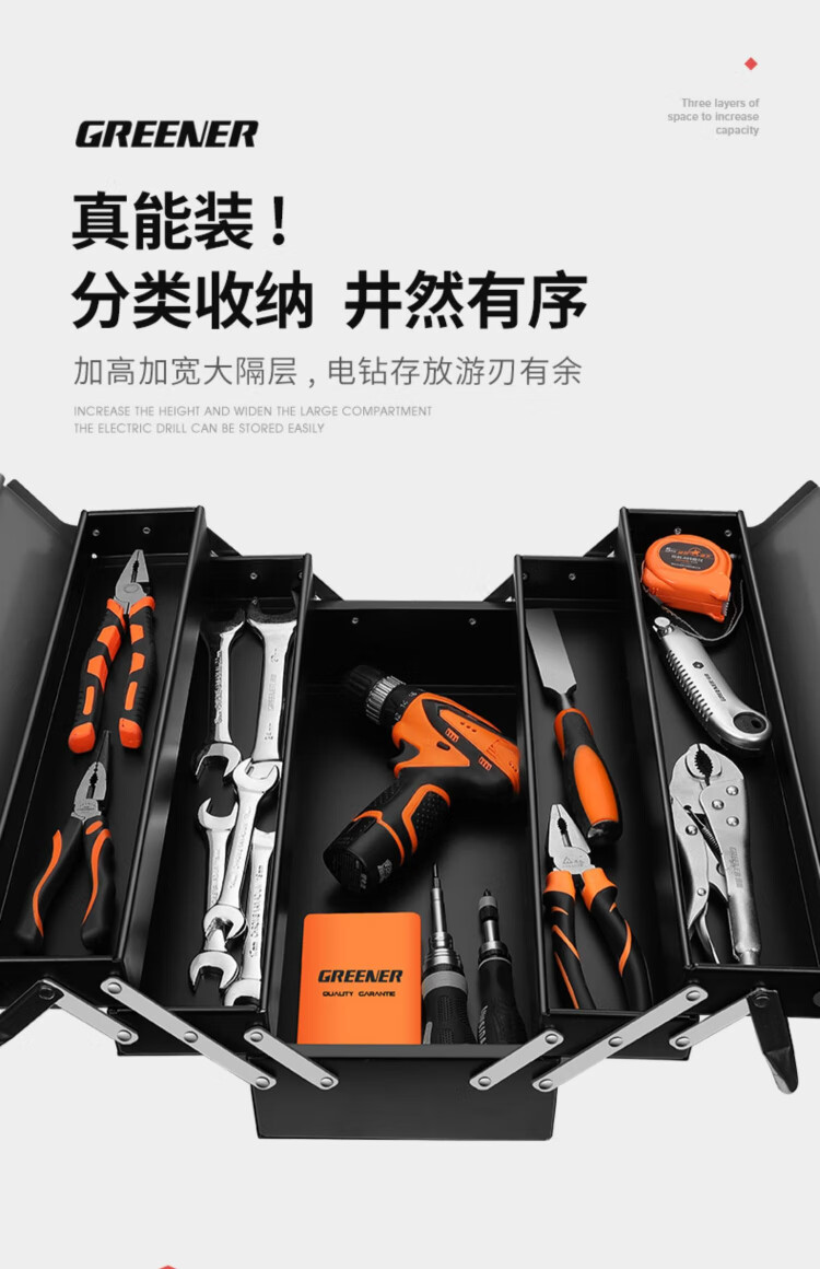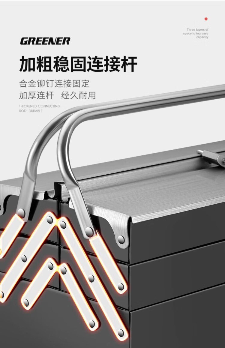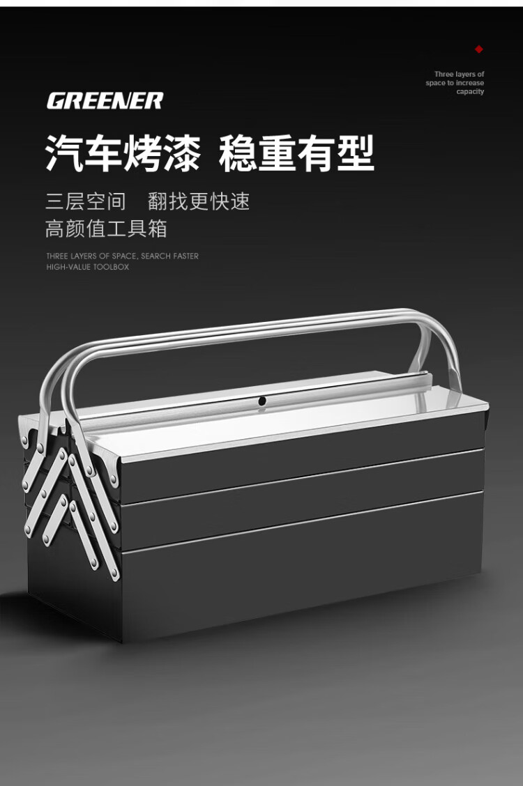 GREENER stainless steel tool box three-layer double-layer folding tool box large multi-functional industrial grade thickened portable storage box special length silver gray model double-layer stainless steel folding tool box