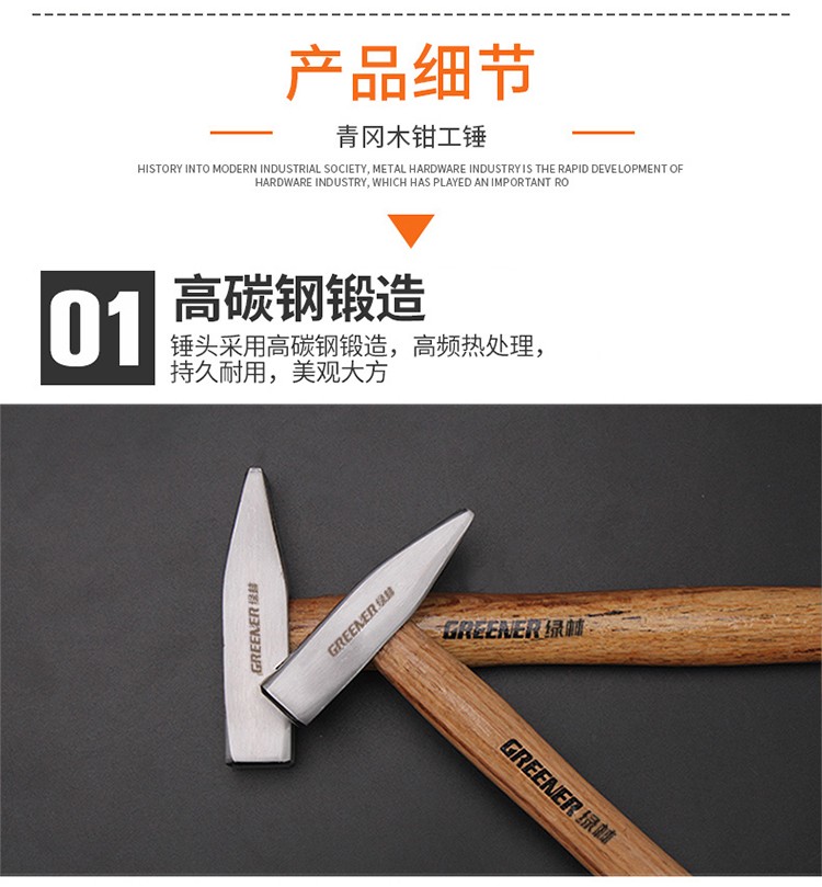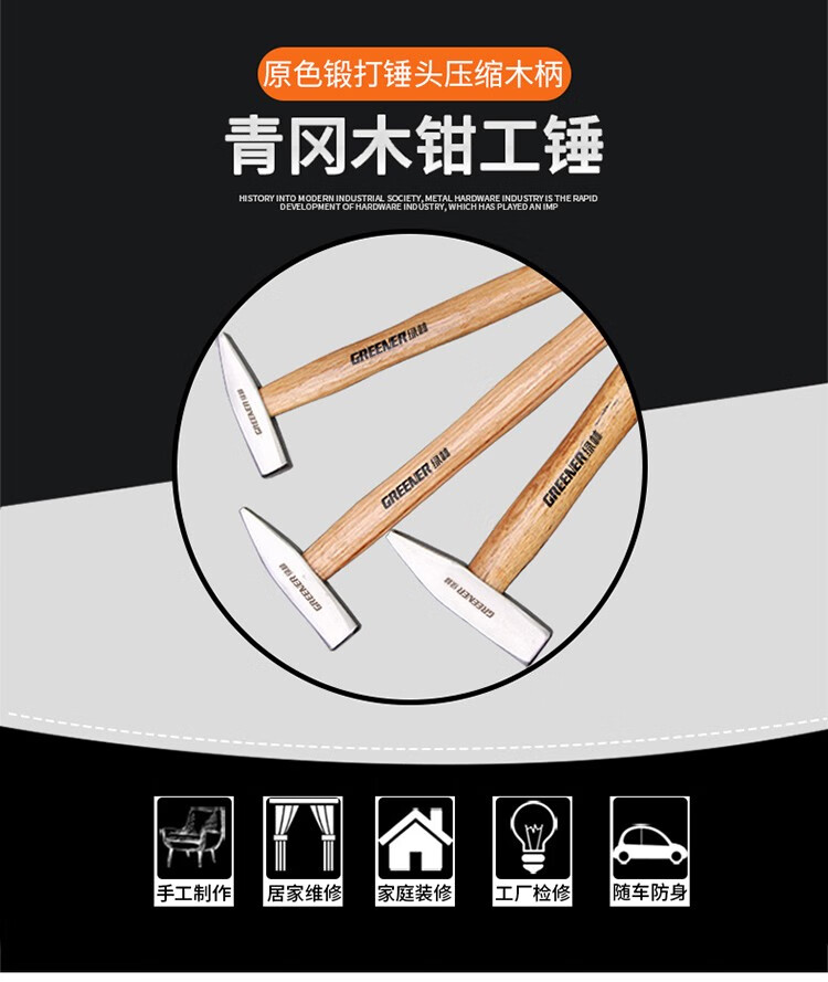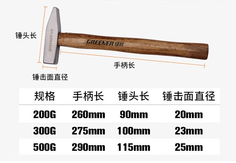 GREENER fitter hammer wooden handle small hammer hardware duckbill hammer sheet metal hammer electrician hammer mini hammer hand hammer flat hammer 200g wooden handle fitter hammer