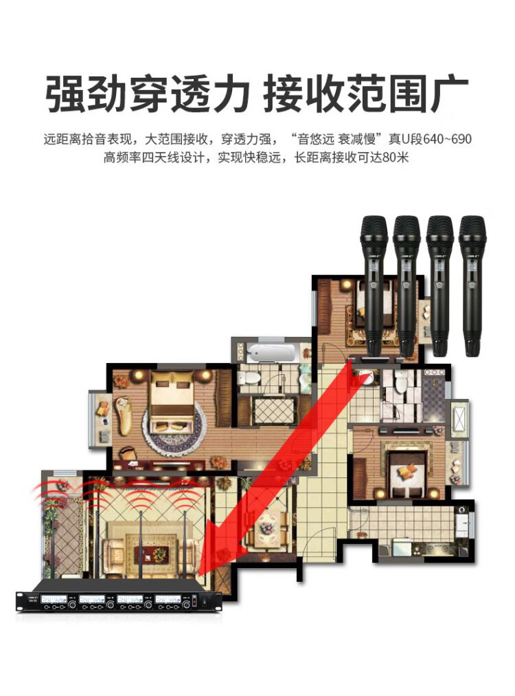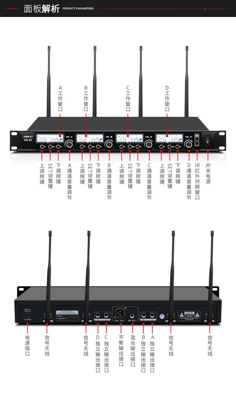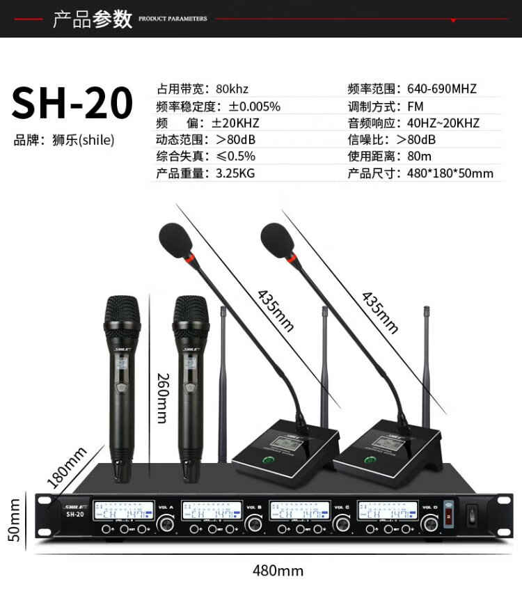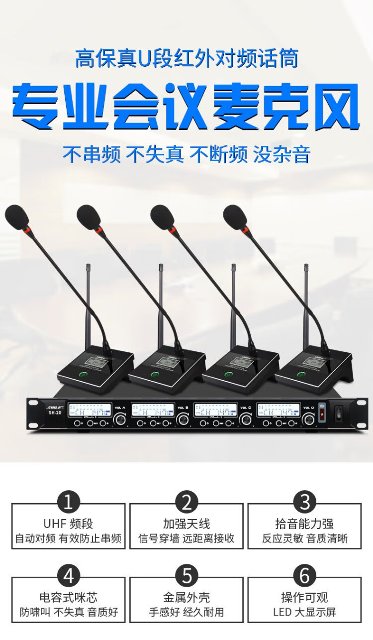Shile (SHILE) SH-20 Wireless Microphone One to Four Conference Room Desktop Gooseneck Microphone Stage U Section Handheld Headset Lavalier SH-20 with 2 Handhelds 2 Conferences