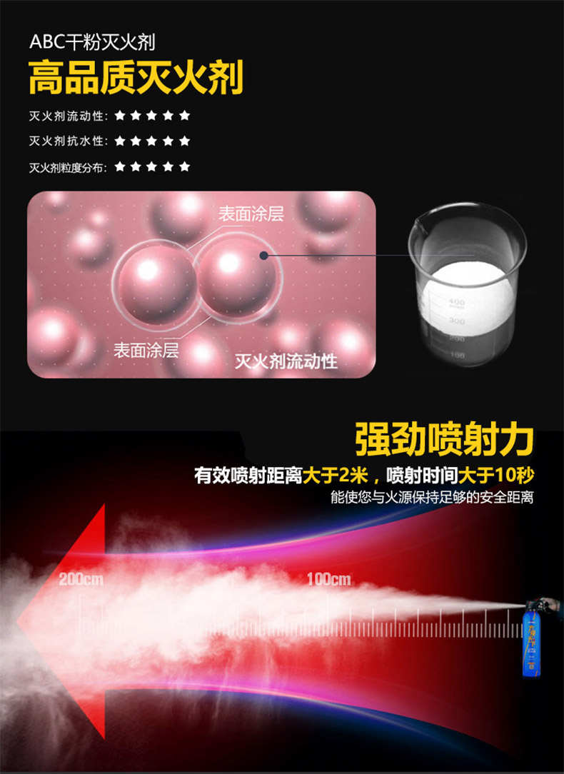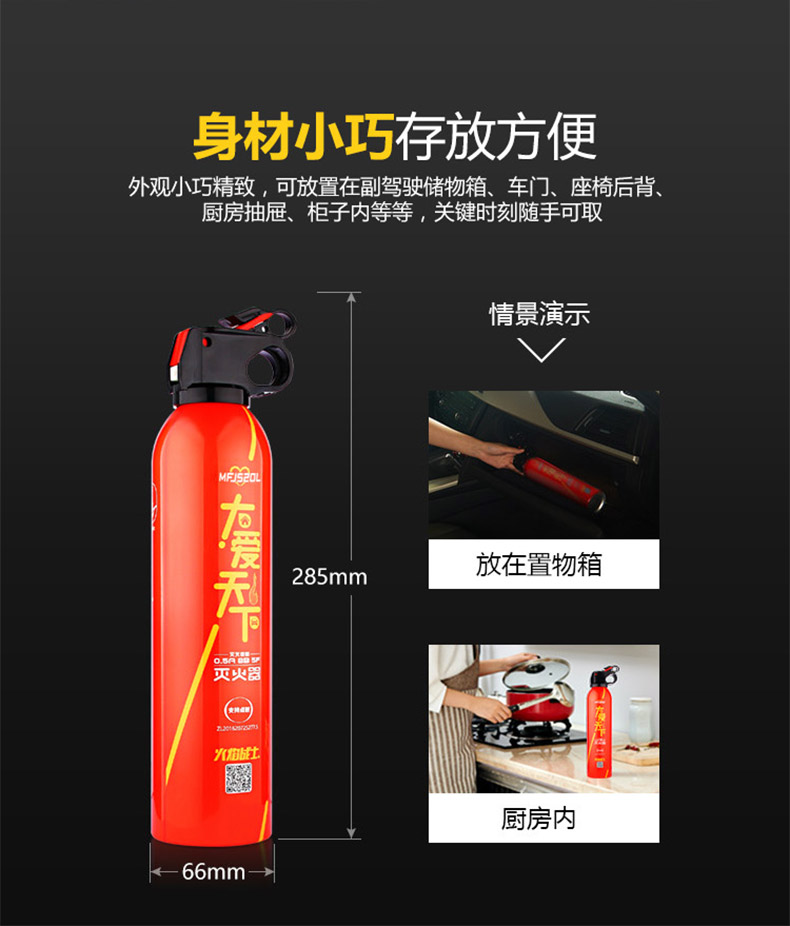 Giant wood car fire extinguisher dry powder household fire extinguisher commercial private car water extinguisher fire equipment car fire extinguishing bottle 520g dry powder dry powder fire extinguisher + tripod warning sign