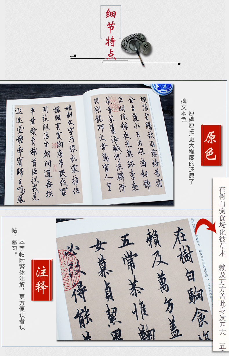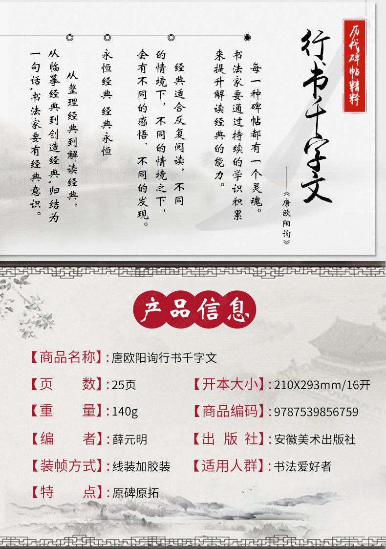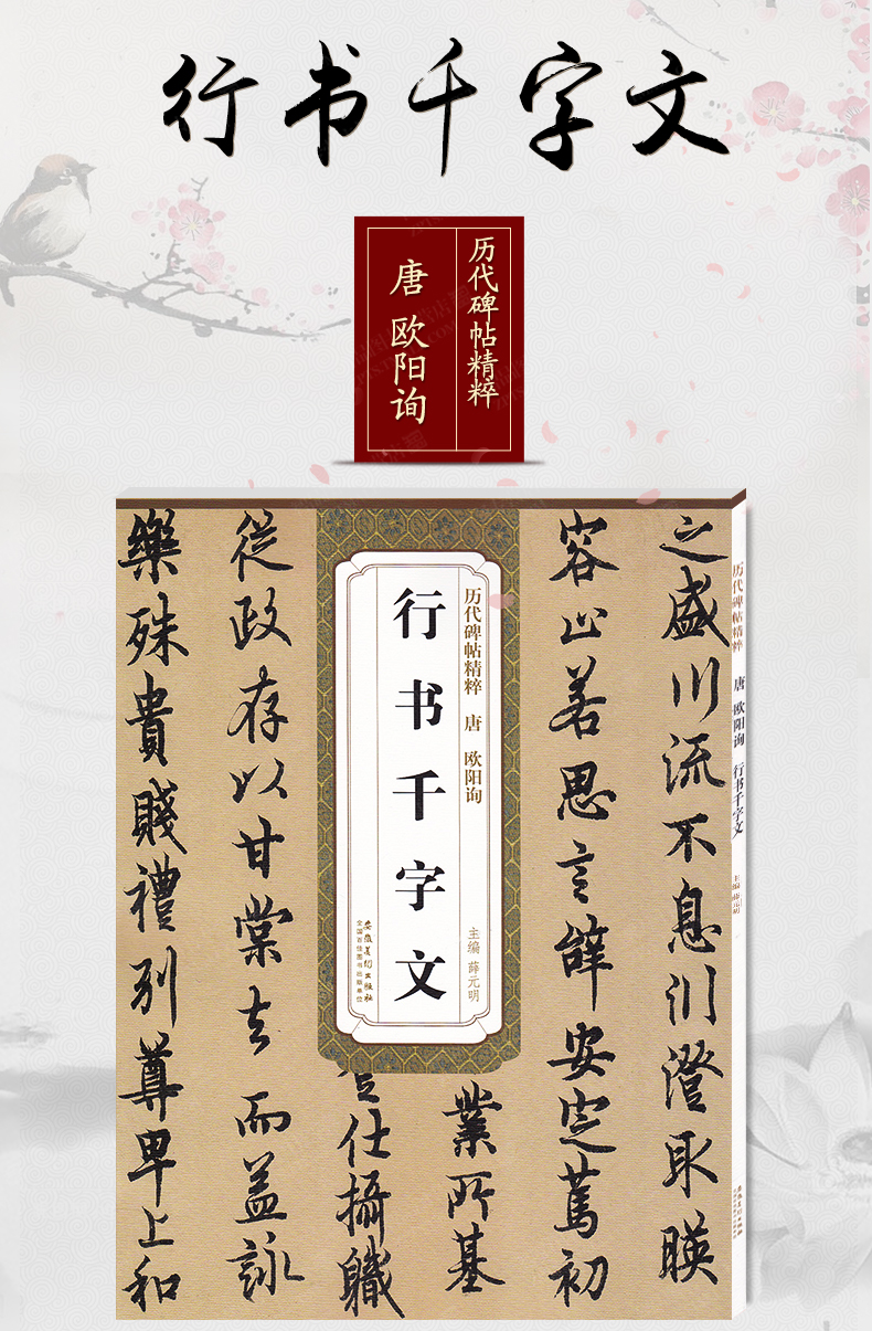 Ouyang Xun's Thousand-Character Essay in Running Script, Tang Dynasty, Essence of Past Stele Calligraphy Ouyang Xun's Calligraphy Brush Copybook, Copy of the Original Inscription from Thousand-Character Essay with Simplified Chinese Marginal Notes, Anhui Fine Arts Publishing House