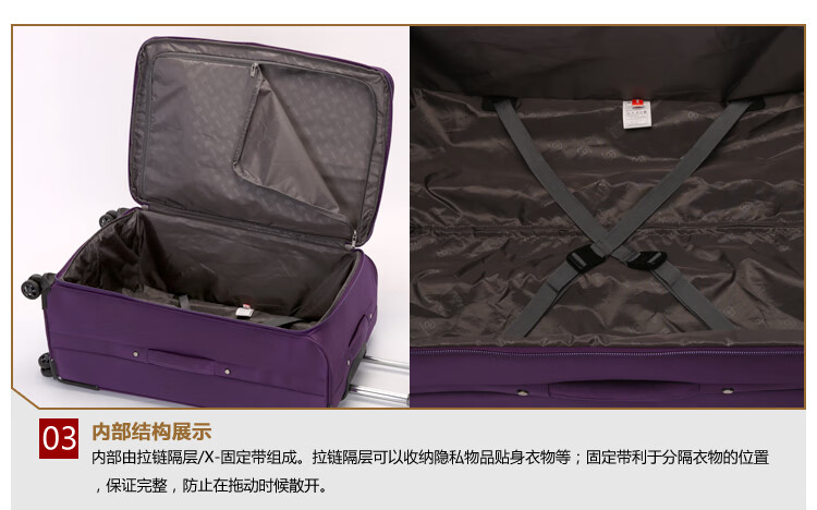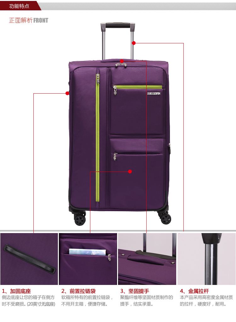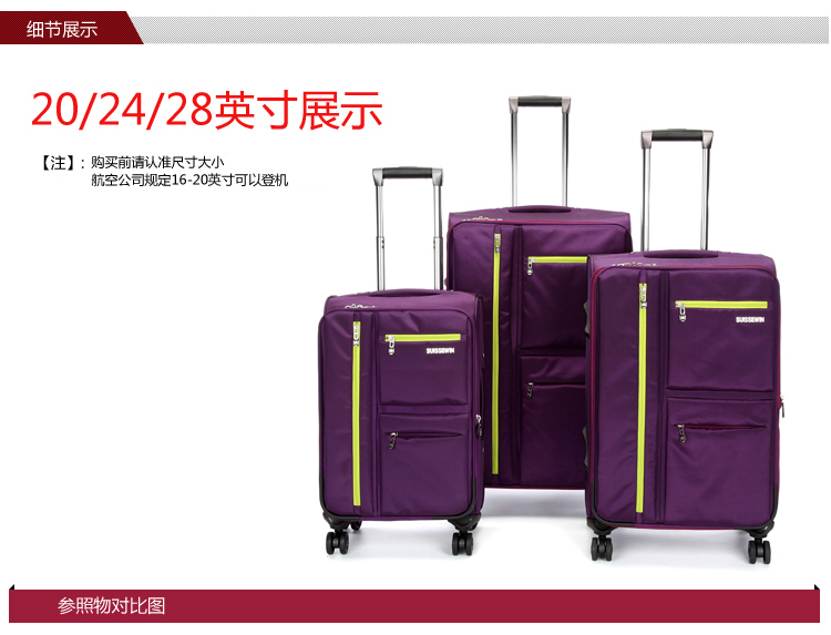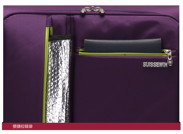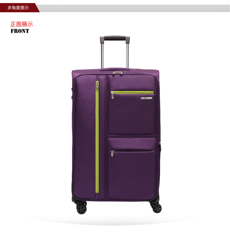 SUISSEWIN wear-resistant Oxford trolley case universal wheel boarding cloth suitcase waterproof suitcase 20 inches purple 6007