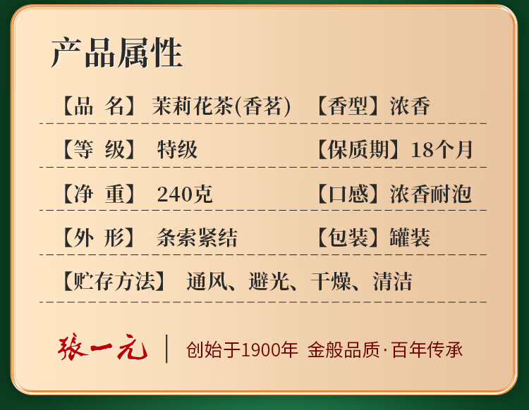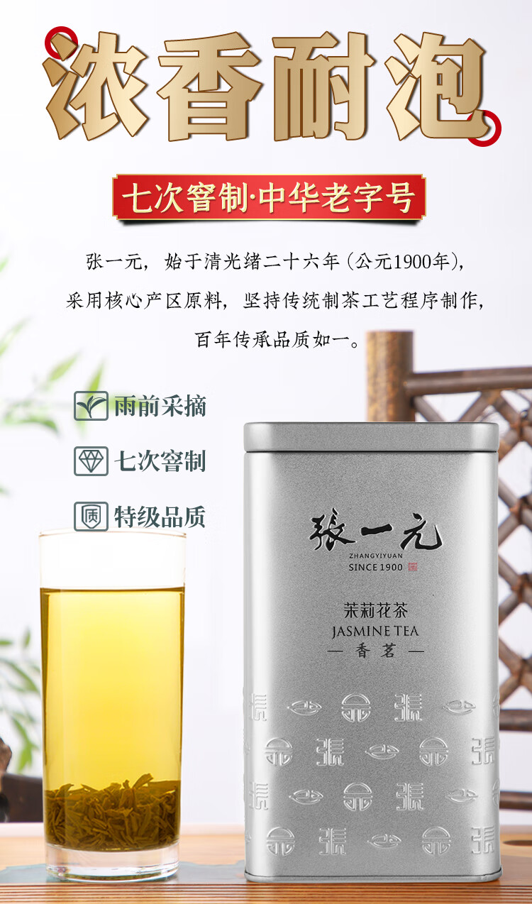 Zhang Yiyuan's special-grade strong-flavor seven-leaf jasmine tea jasmine tea 240g silver barrel canned Chinese time-honored brand silver barrel