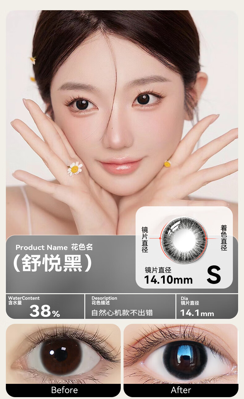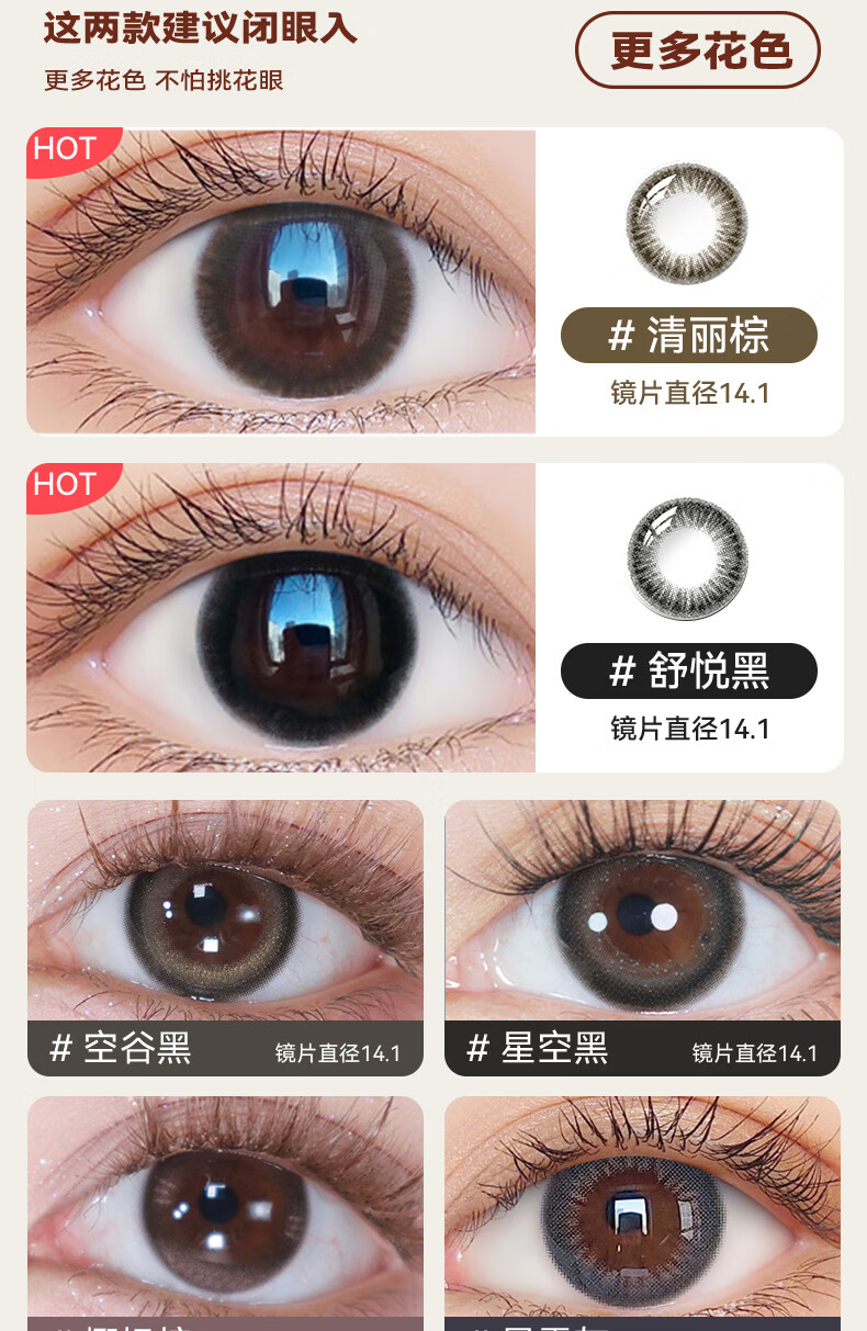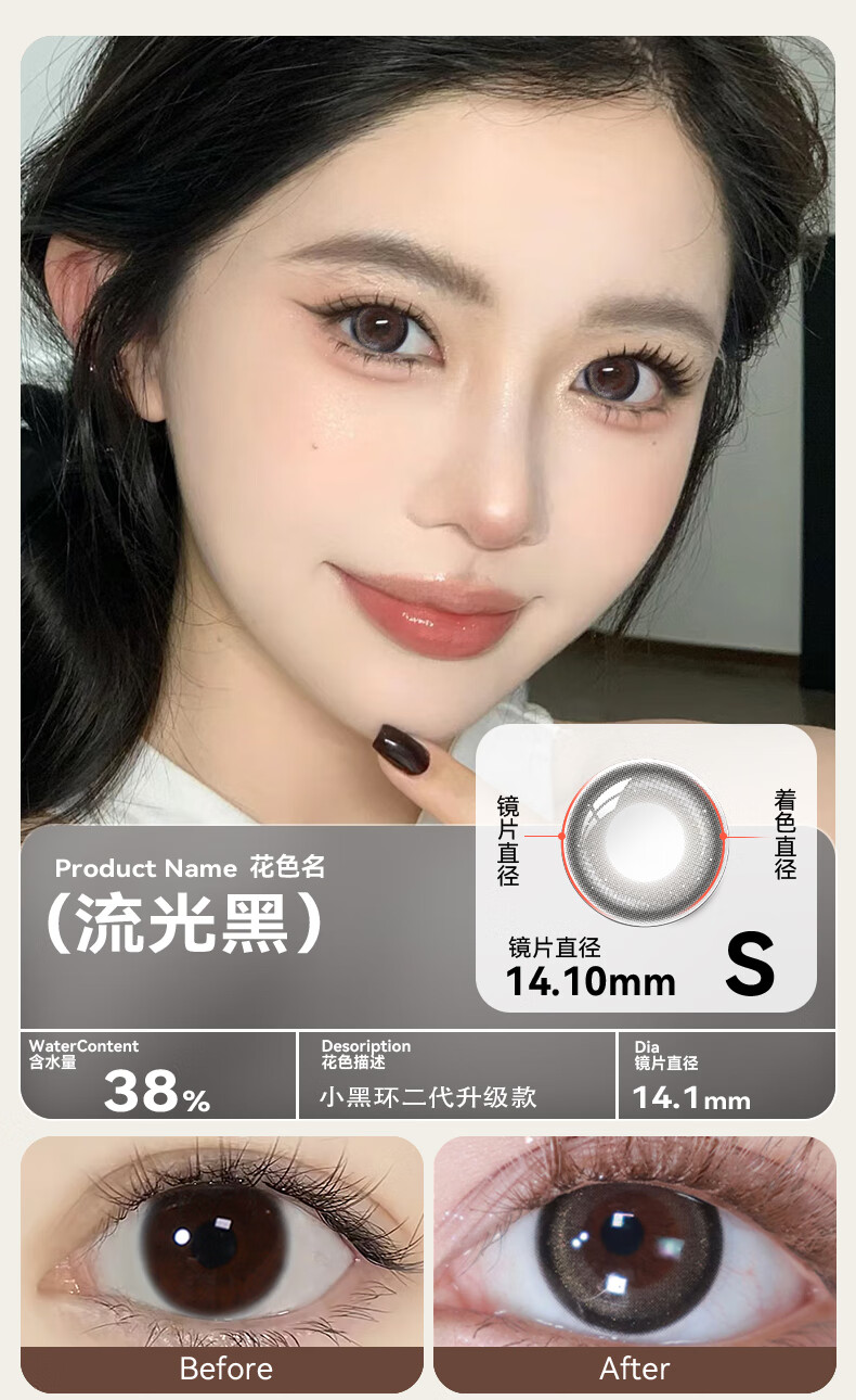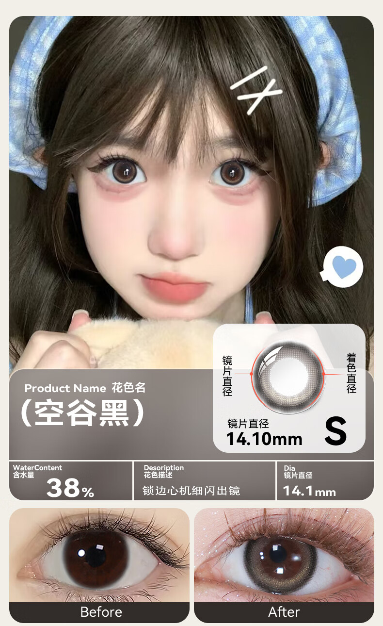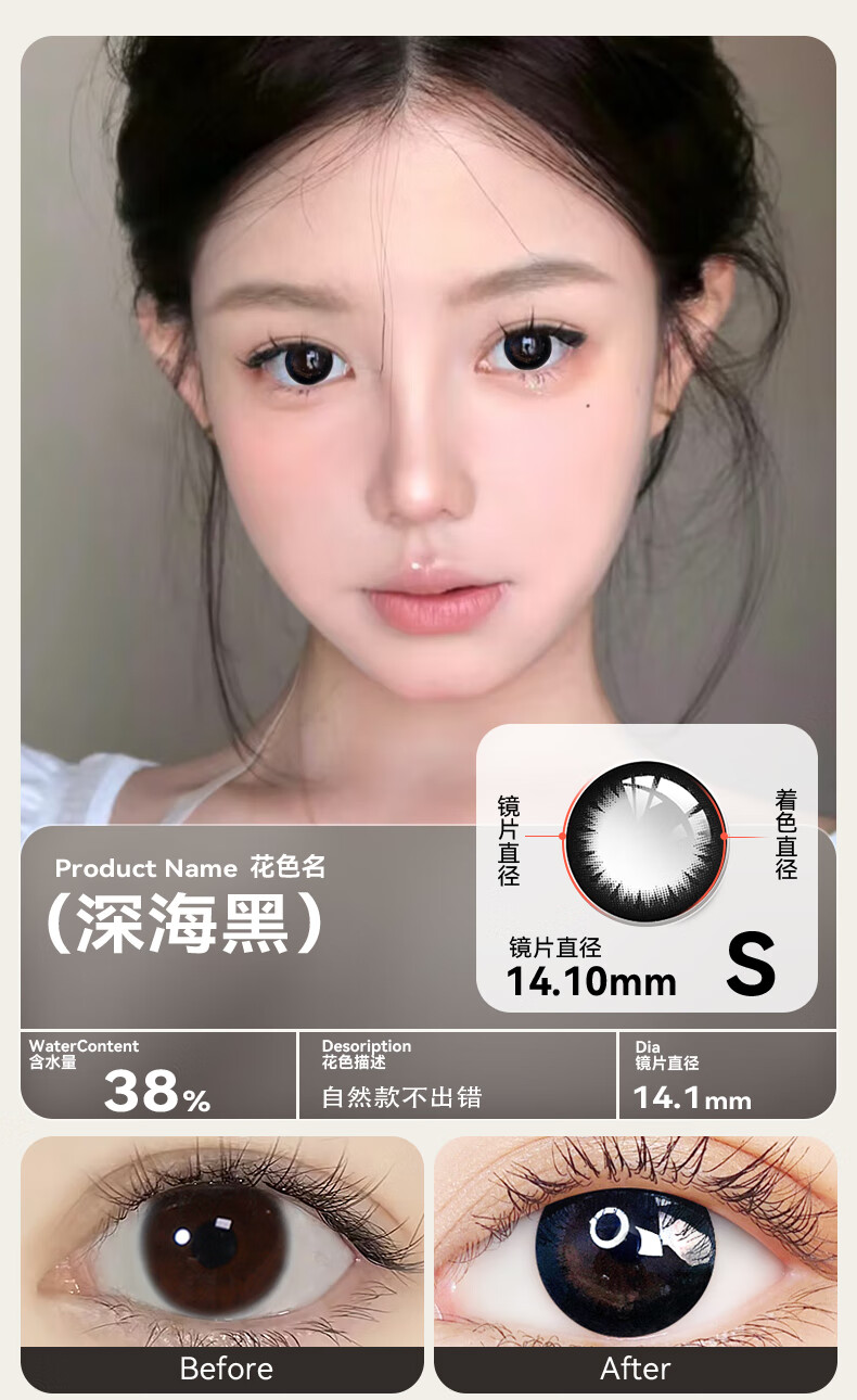 Haichang 2-piece set of genuine color contact lenses for half a year + free care solution, contact lenses for myopia, small diameter, eye-catching for college students, 6 yuan discount for membership, deep sea black + care solution + care box, 2-piece set, 0 degree