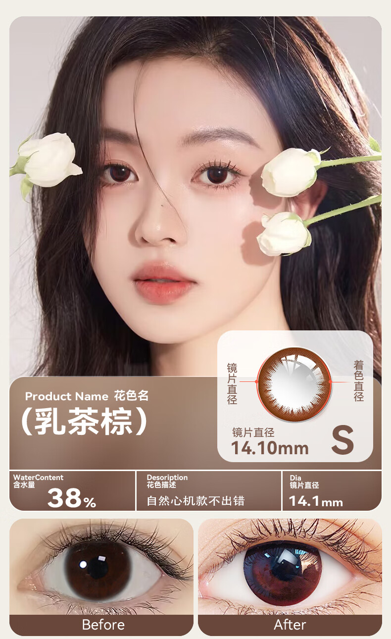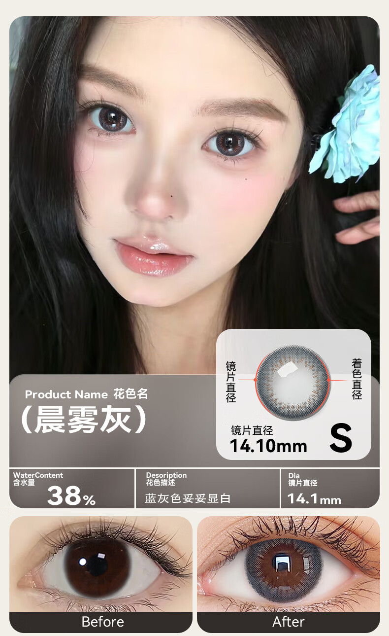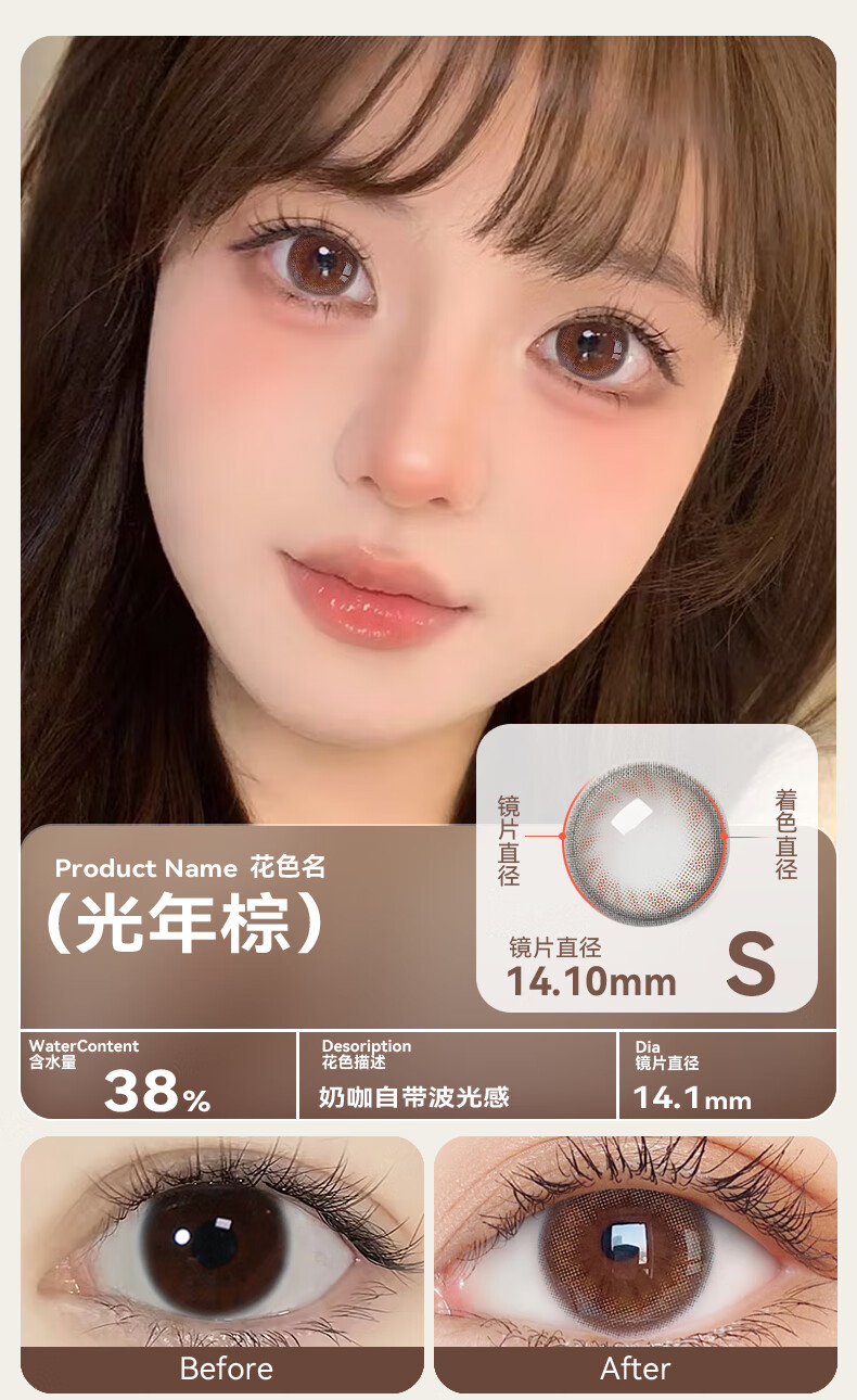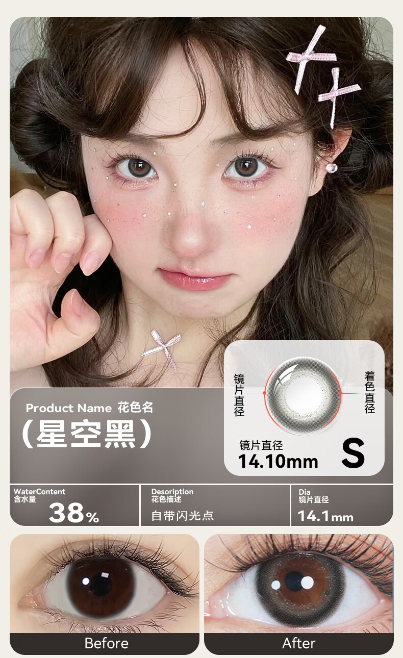Haichang 2-piece set of genuine color contact lenses for half a year + free care solution, contact lenses for myopia, small diameter, eye-catching for college students, 6 yuan discount for membership, deep sea black + care solution + care box, 2-piece set, 0 degree