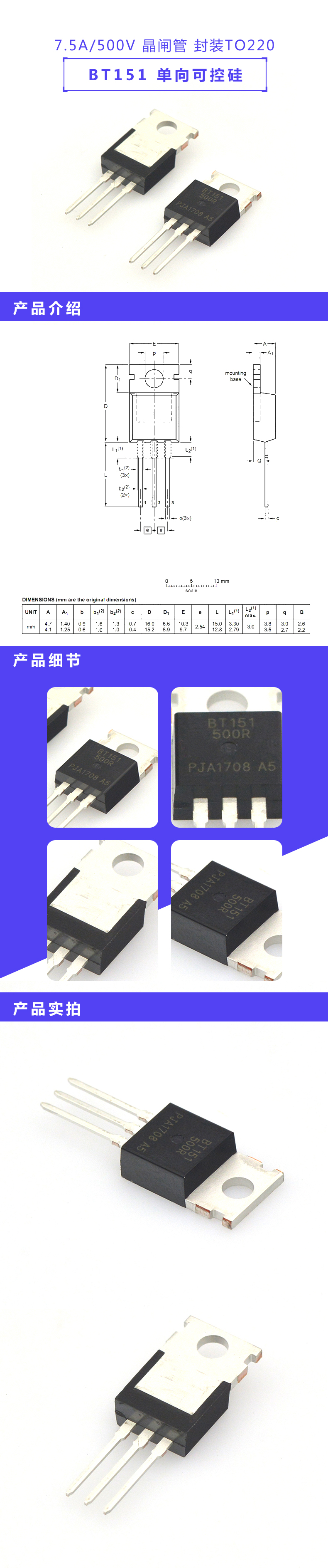 TaoTimeClub BT151 BT151-500R unidirectional thyristor 7.5A/500V thyristor