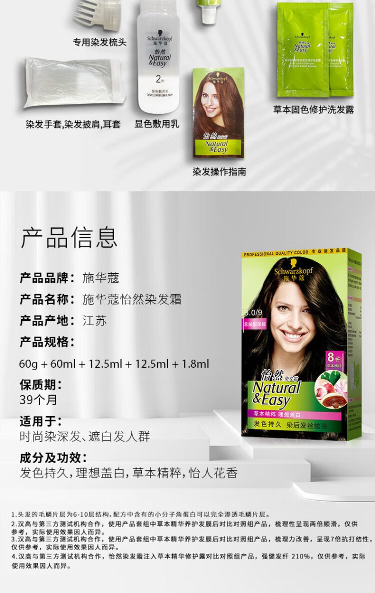Schwarzkopf Yiran hair dye cream 3.88 mocha dark red brown hair dye plant hair dye cream for self-dyeing for men and women to cover whitening