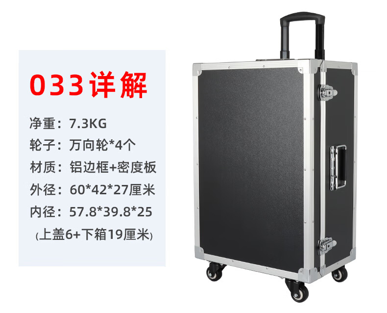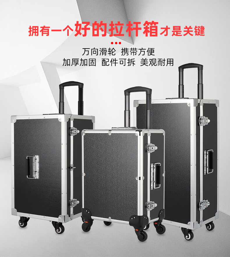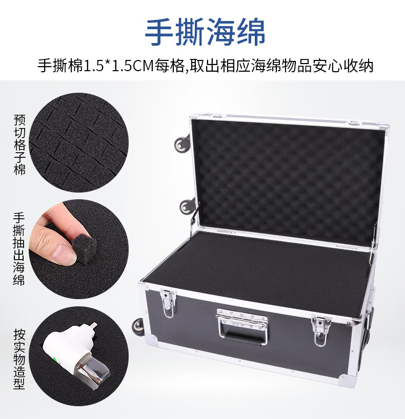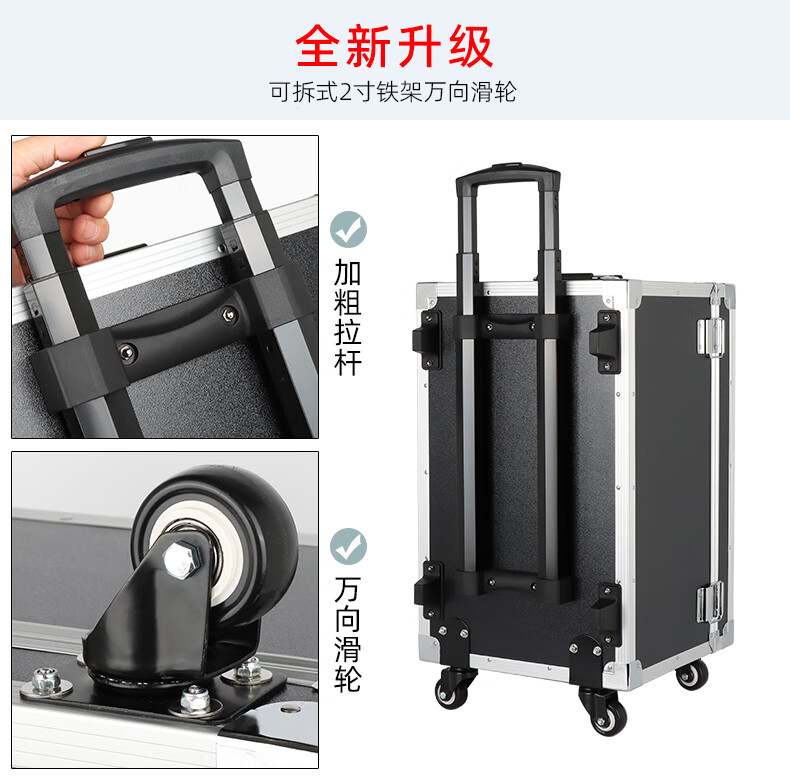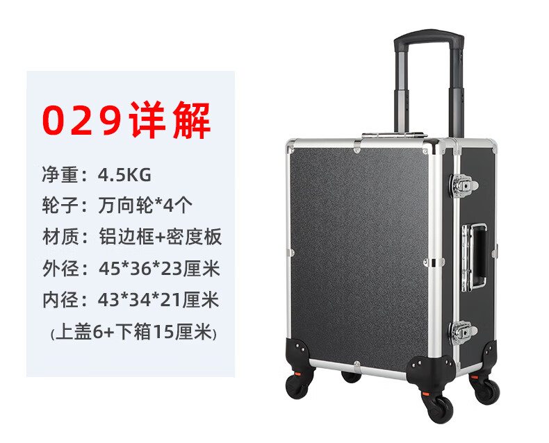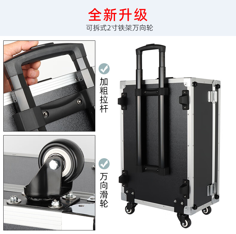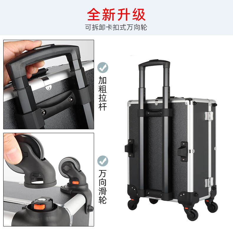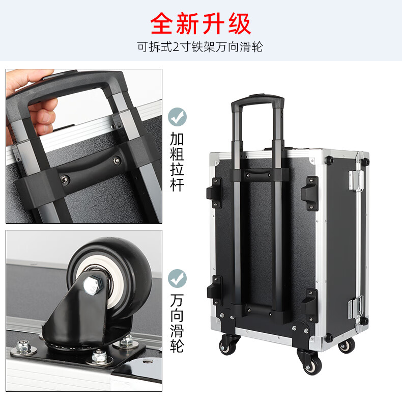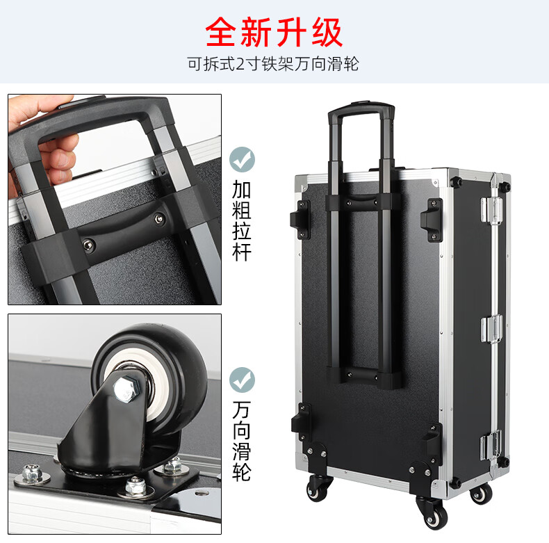 Chiming Portable Pulley Trolley Box Aluminum Alloy Toolbox Hardware Instrument Equipment Box Customized Model Storage and Transport Box 029 Black Cotton Universal Wheel 45x36x23cm