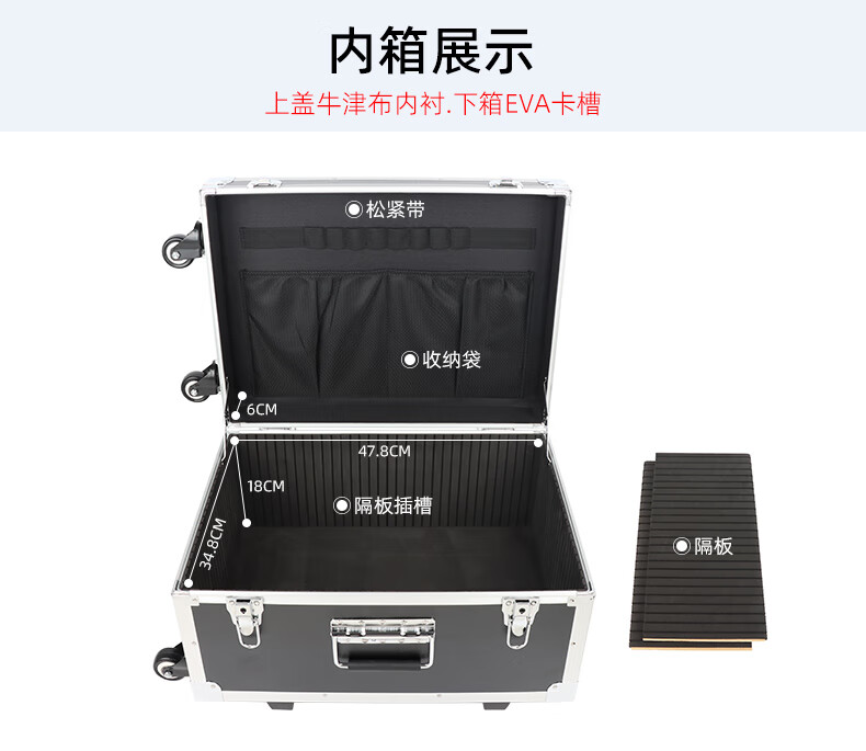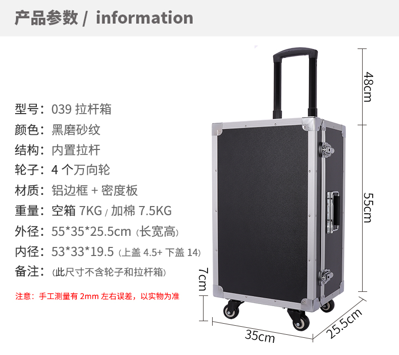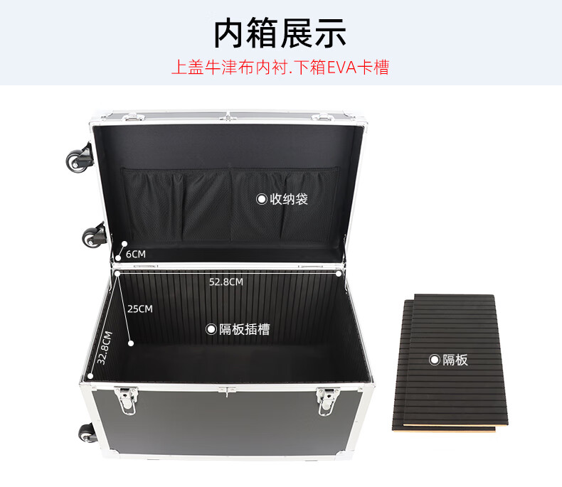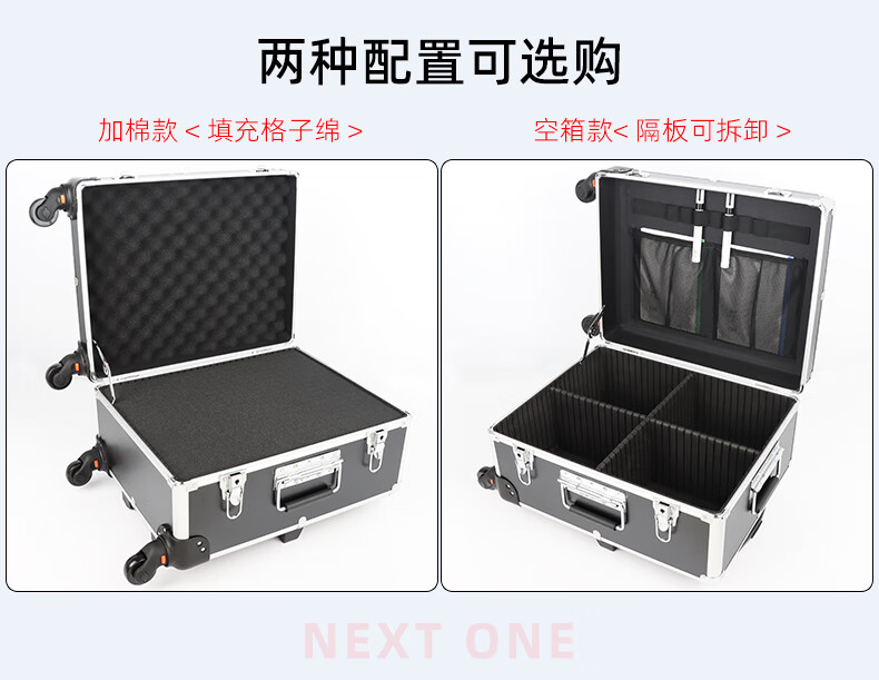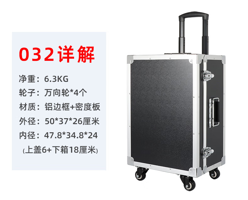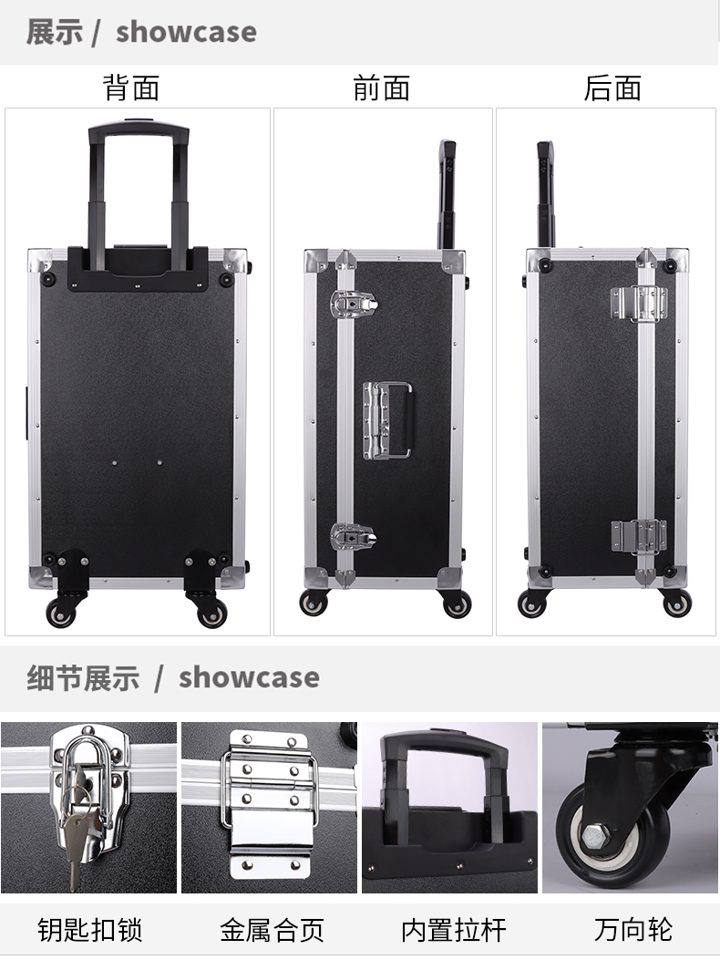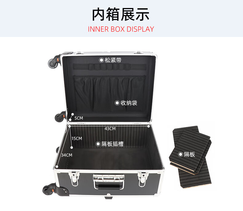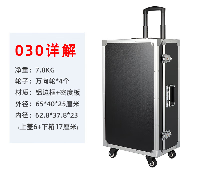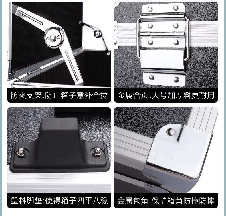 Chiming Portable Pulley Trolley Box Aluminum Alloy Toolbox Hardware Instrument Equipment Box Customized Model Storage and Transport Box 029 Black Cotton Universal Wheel 45x36x23cm