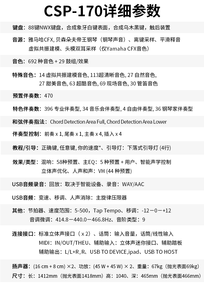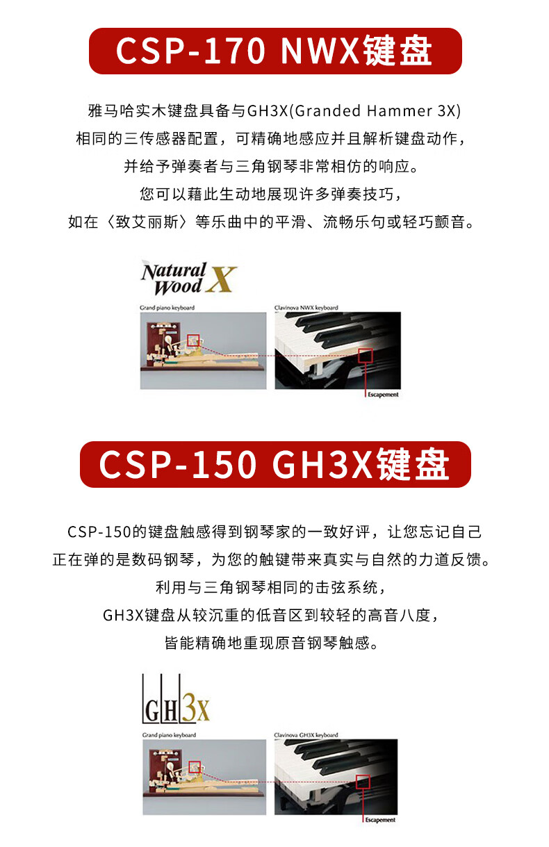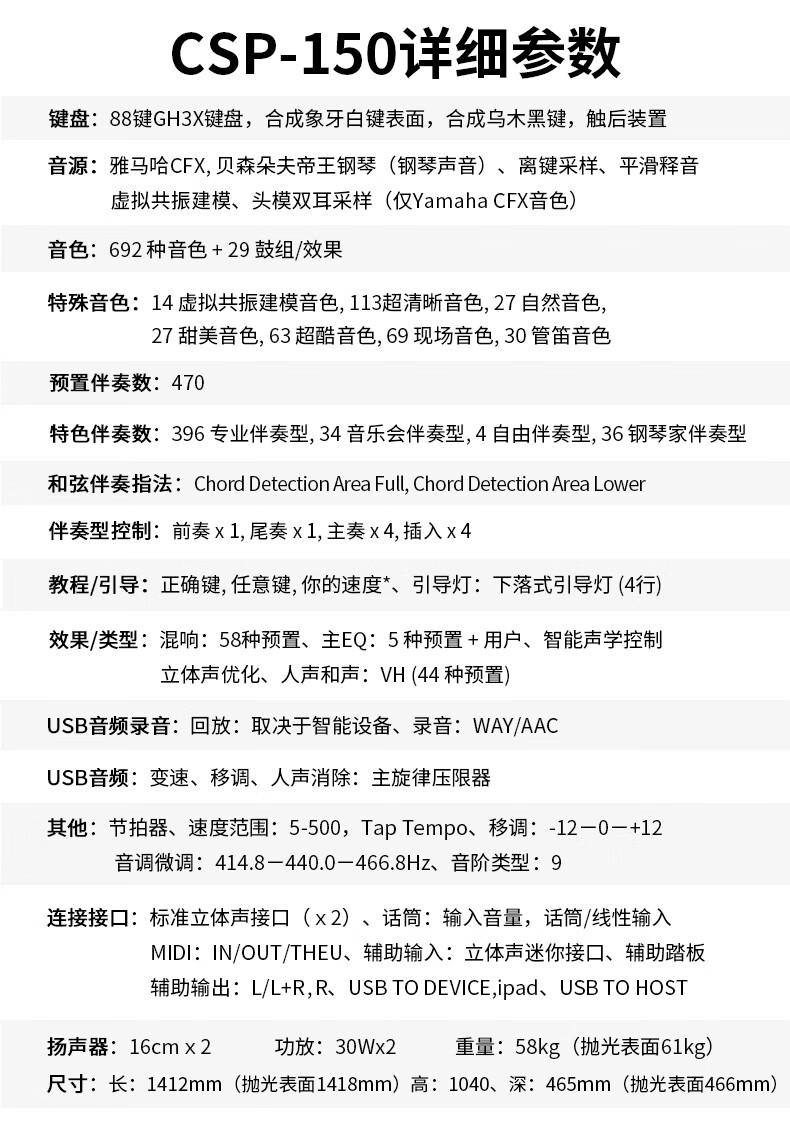 Yamaha (YAMAHA) electric piano CSP150/170 high-end vertical professional hammer adult teaching lighted solid wood keyboard electronic piano CSP150PE paint model + official standard + full set of accessories