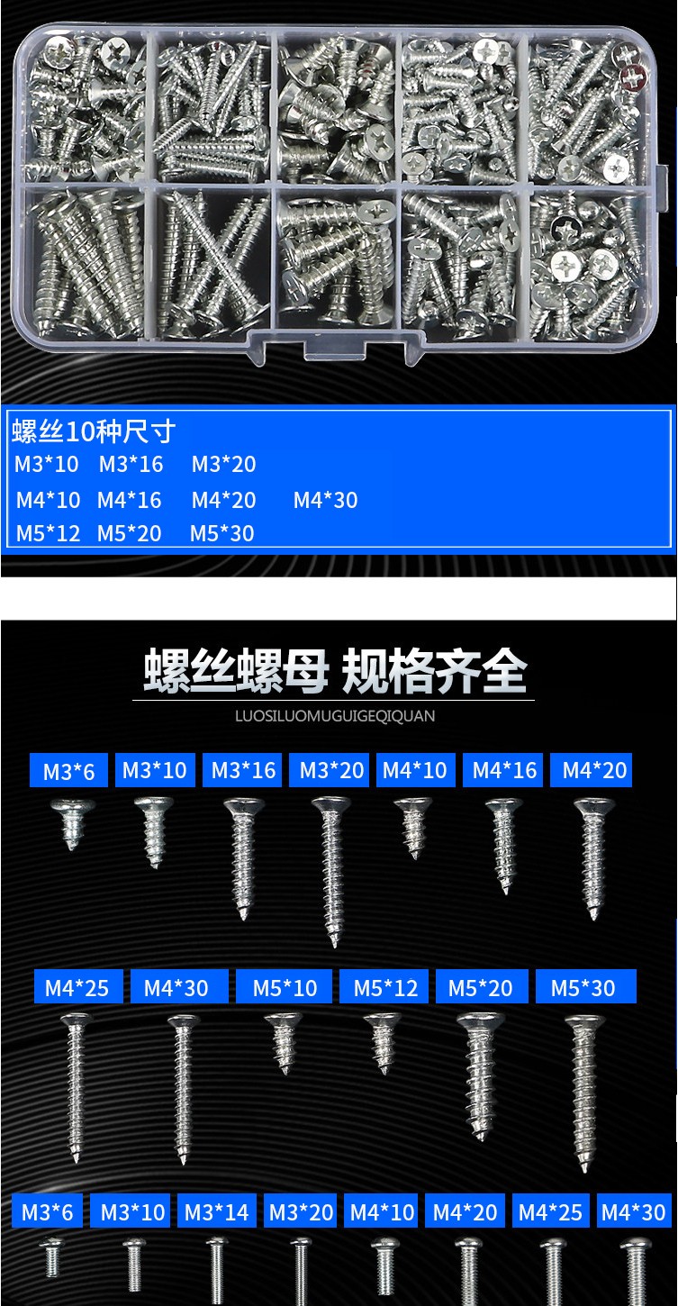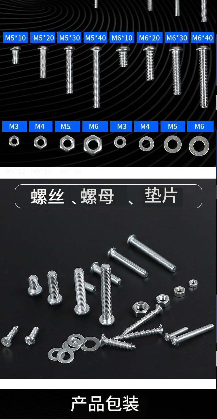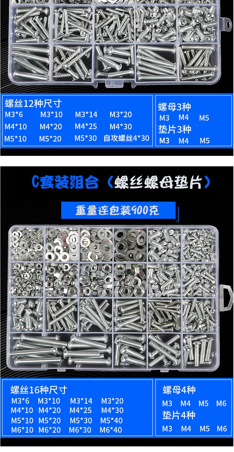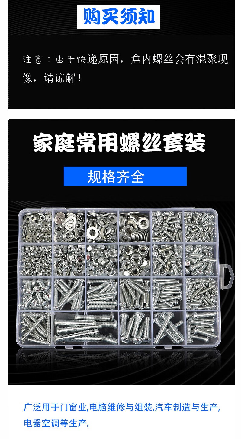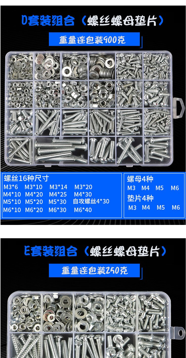 Yuanjing Electric (YJYDQ) round head self-tapping screw set cross pan head screw nut nut screw washer combination screw M3M4M5M6 C package 24 types 22 grids
