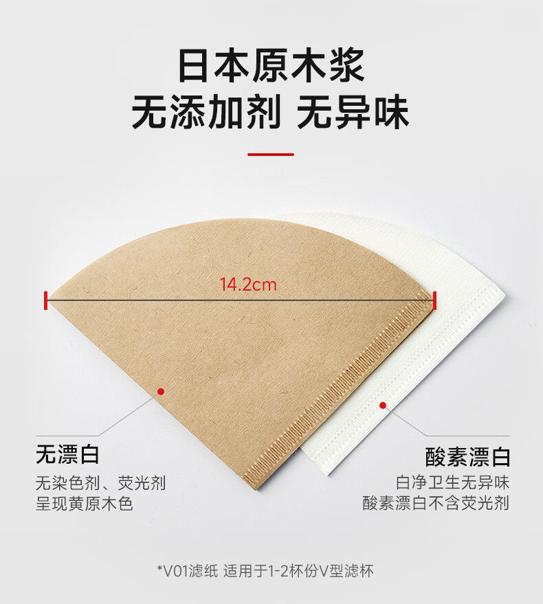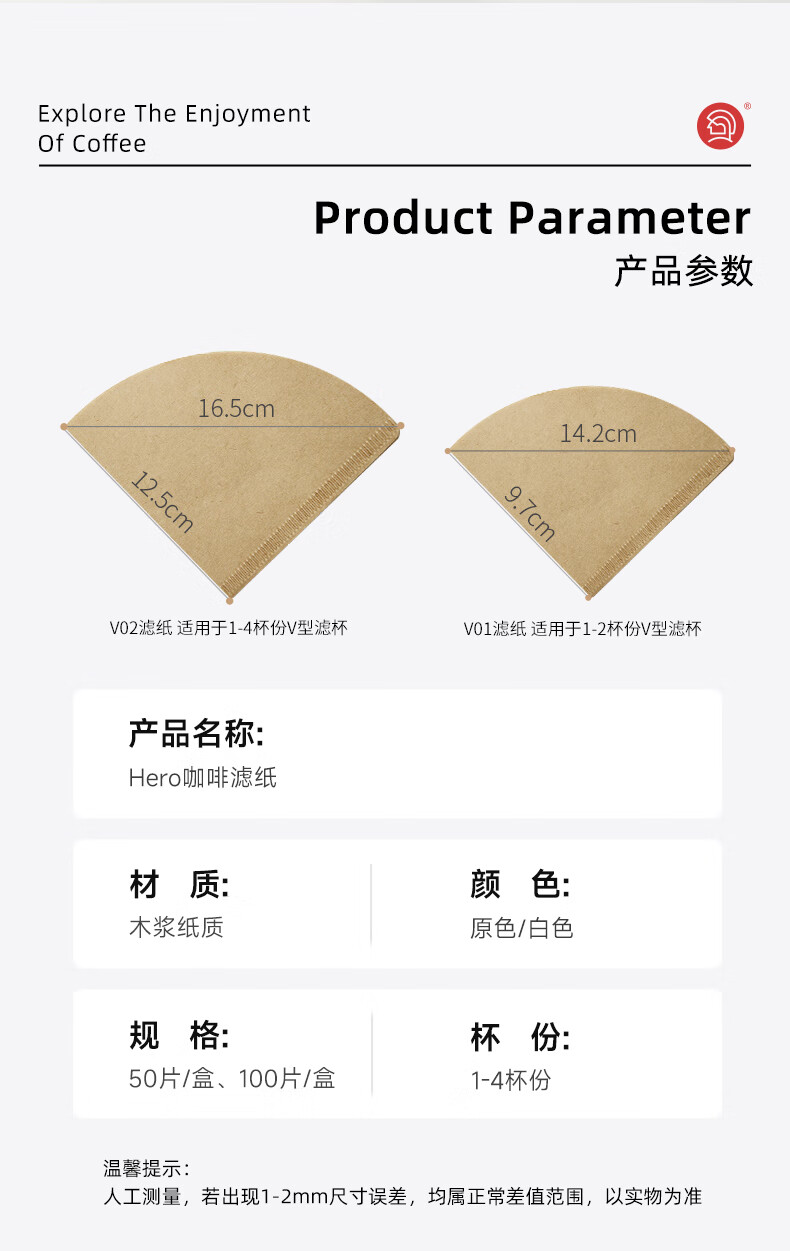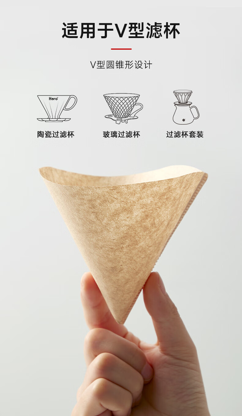 Hero V-shaped coffee filter drip type hand-brewed coffee filter paper and V60 wood fiber hand-brewed kettle filter paper v01 original color 100 pieces 1-2 cups