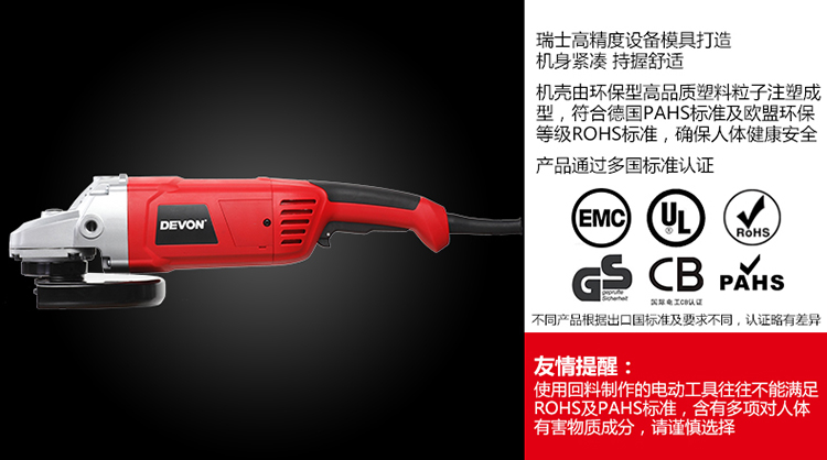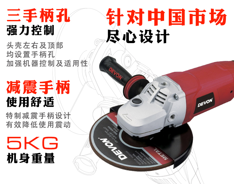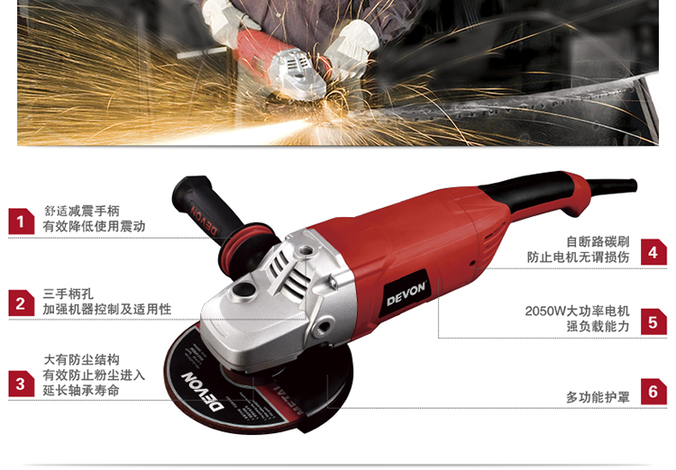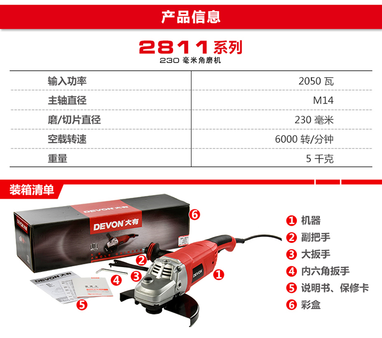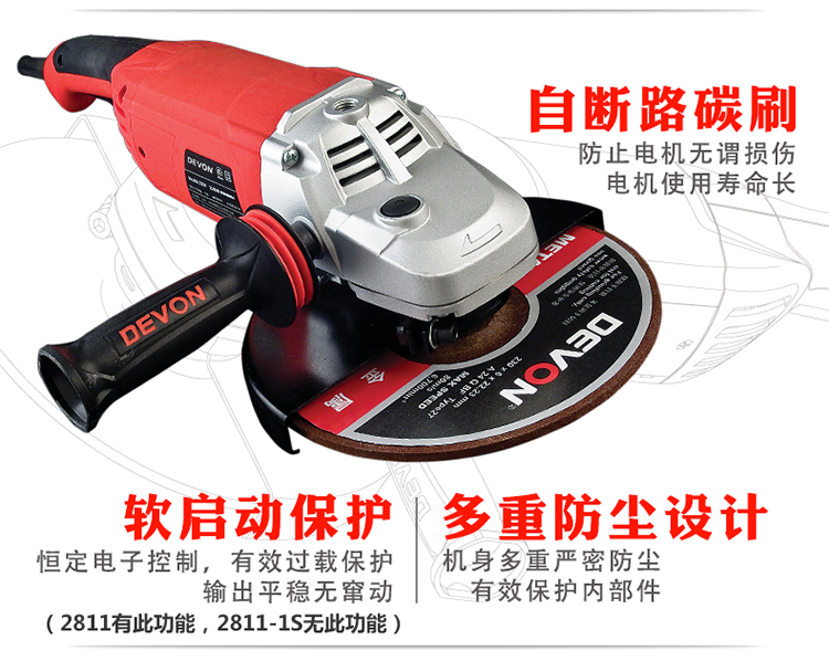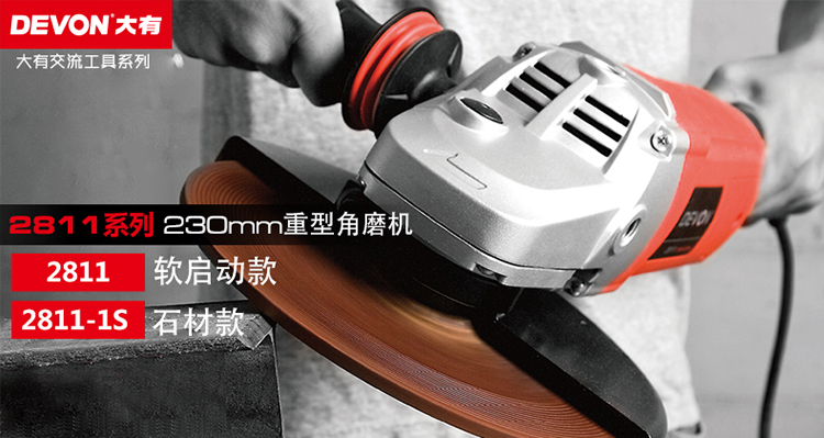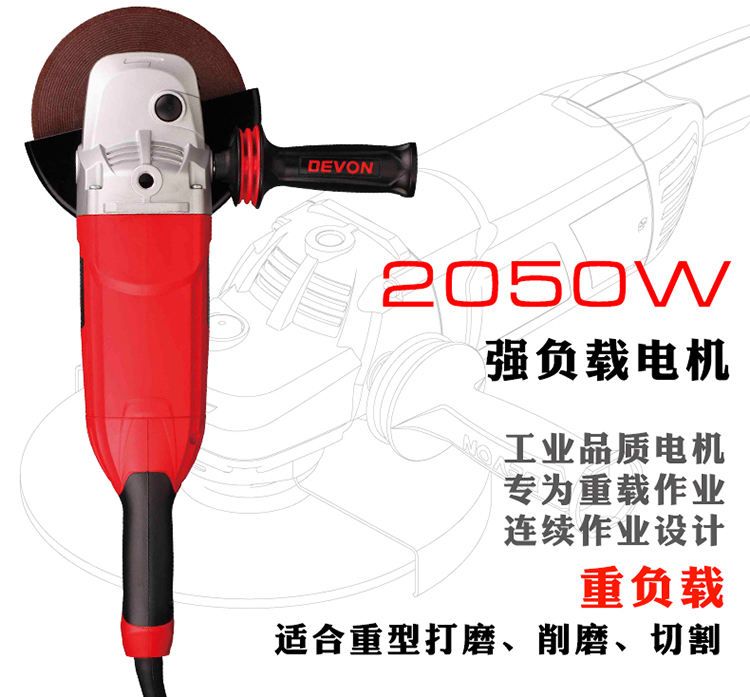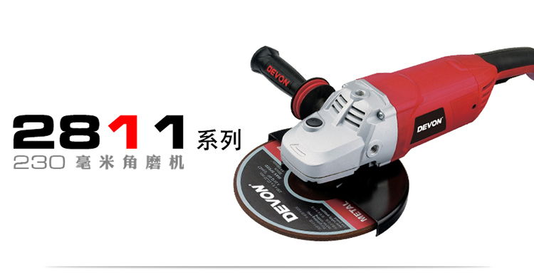 Devon high-power 230mm angle grinder 2811 industrial grade 2050W angle grinder stone cutting metal polishing 230mm angle grinder 2050W with shock-absorbing handle