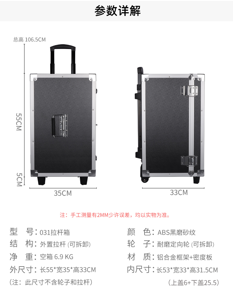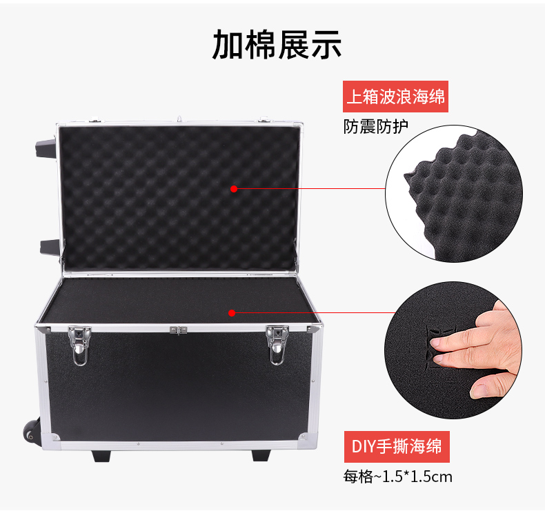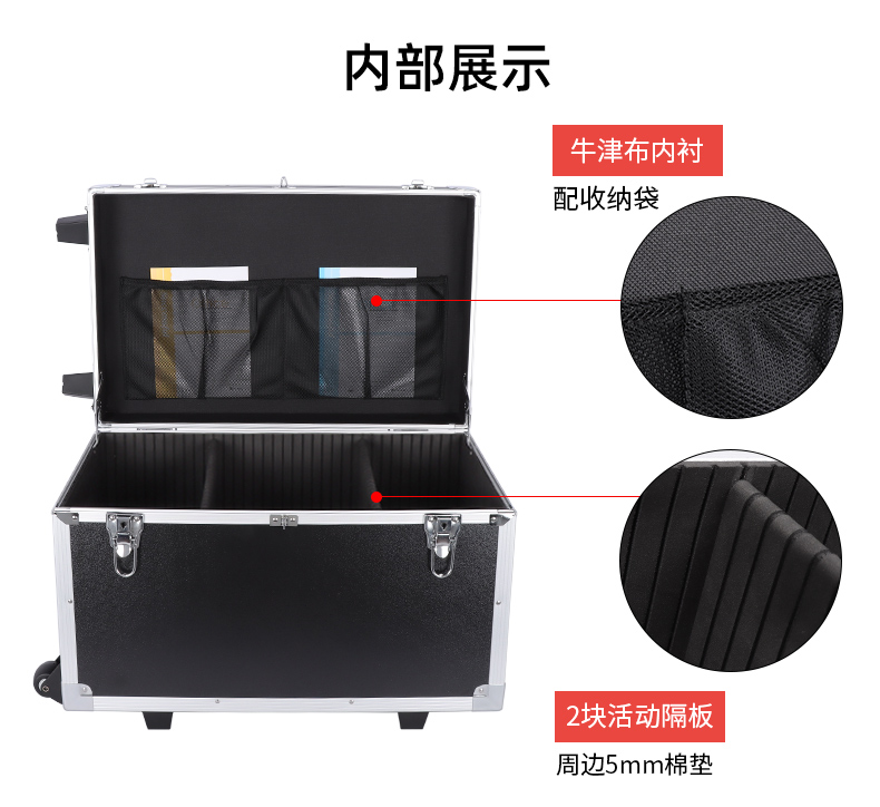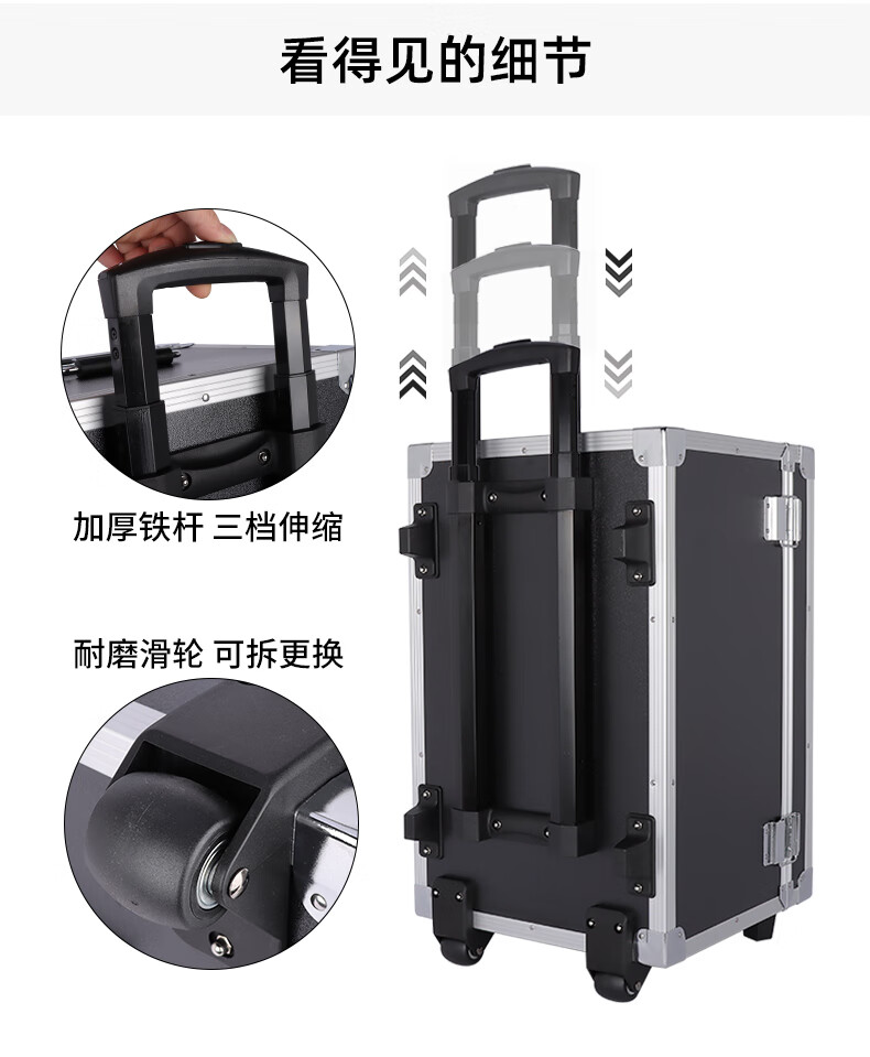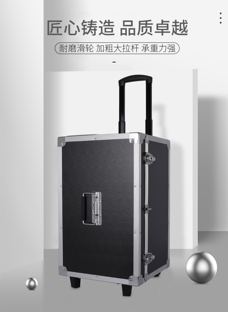 Chiming push-pull mobile trolley box, aluminum alloy box, instrument storage box, trolley-type home custom tool box, electrician repair hardware installation box, multi-functional transport box 031 black trolley empty box with partition