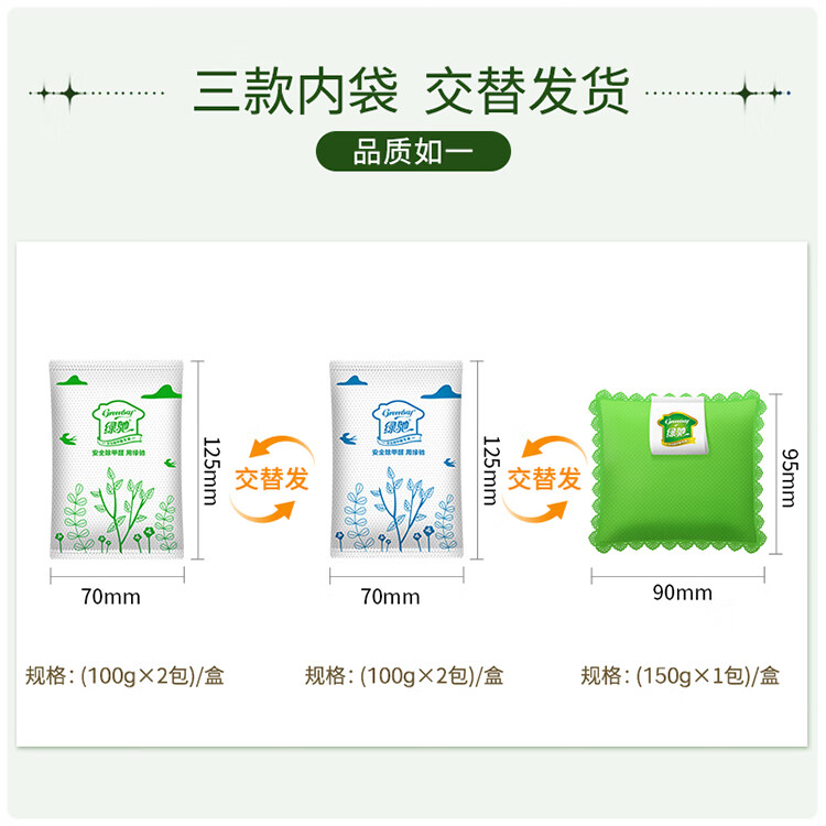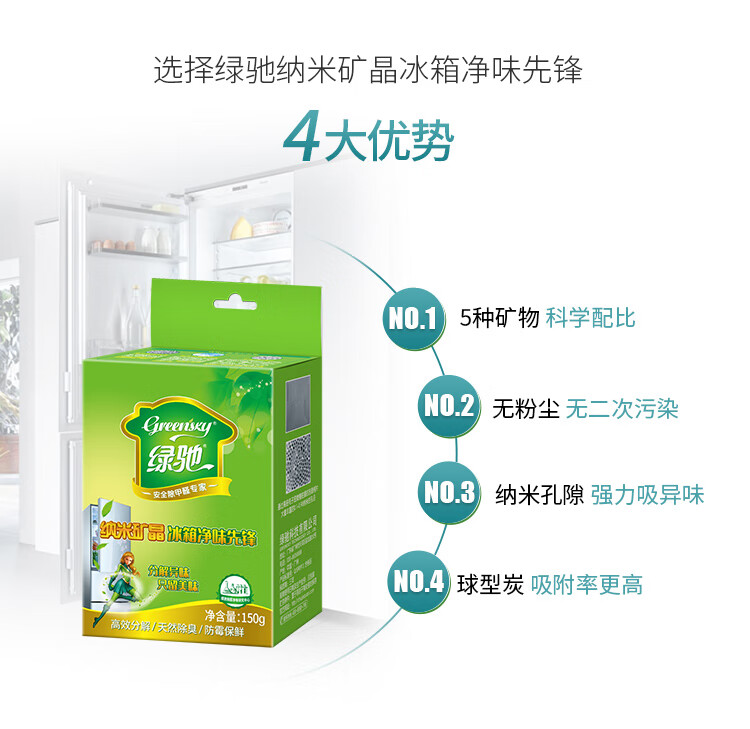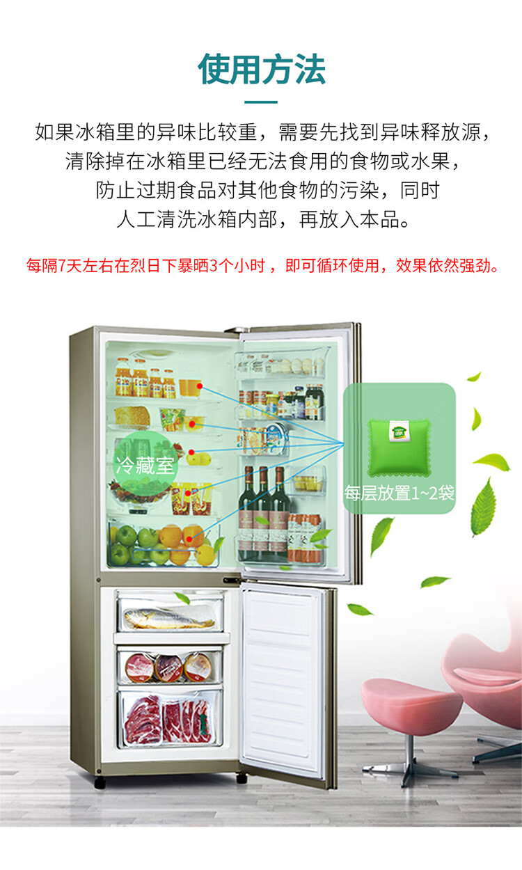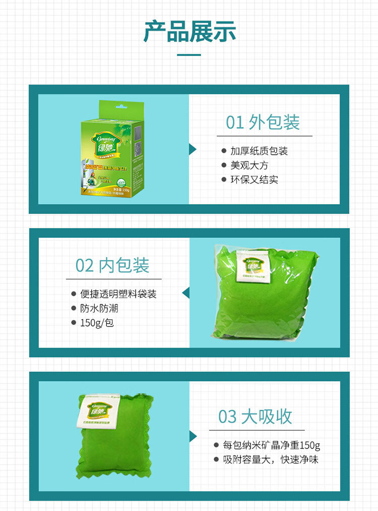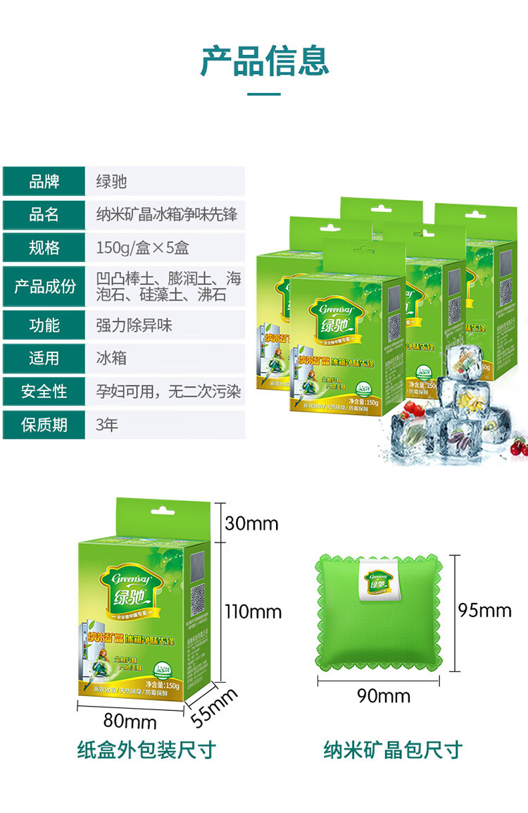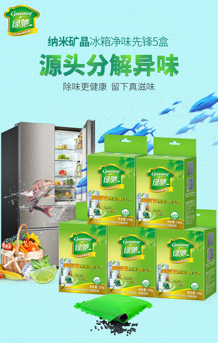 Green Packet 5 boxes of refrigerator, deodorizing and odor removing agent, activated carbon, absorbing, refreshing, antibacterial, disinfecting and food skewering preservation artifact
