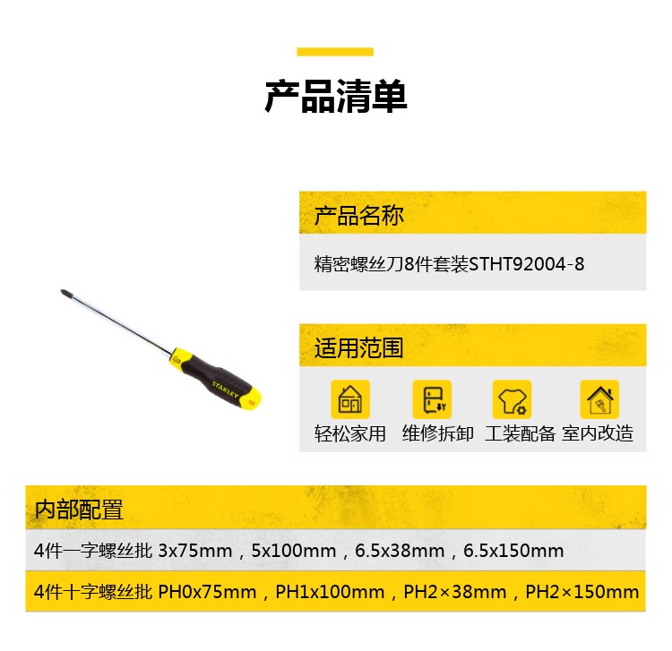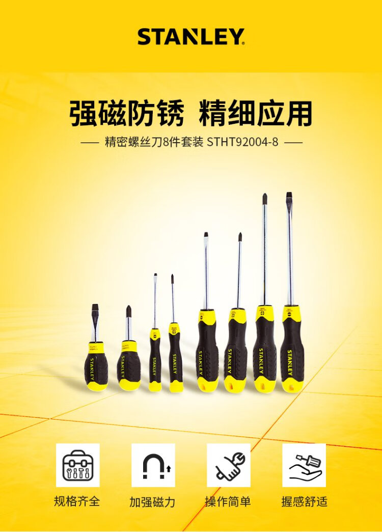 Stanley precision screwdriver 8-piece set manual chromium vanadium steel rubber handle magnetic screwdriver anti-rust and anti-corrosion STHT92004-8