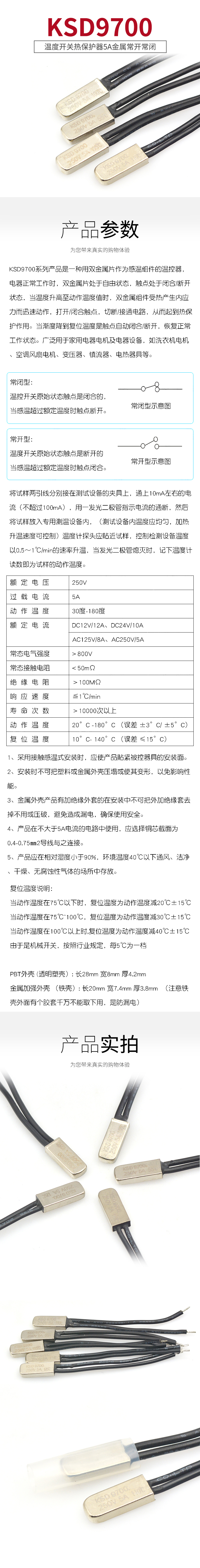 TaoTimeClub KSD9700 temperature control switch temperature switch thermal protector 5A metal normally open and normally closed 15 25 degrees ~ 155 degrees 5A metal normally closed 125 degrees