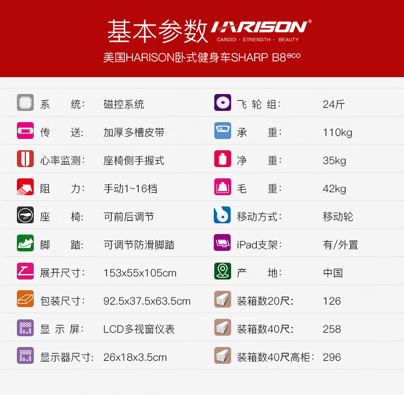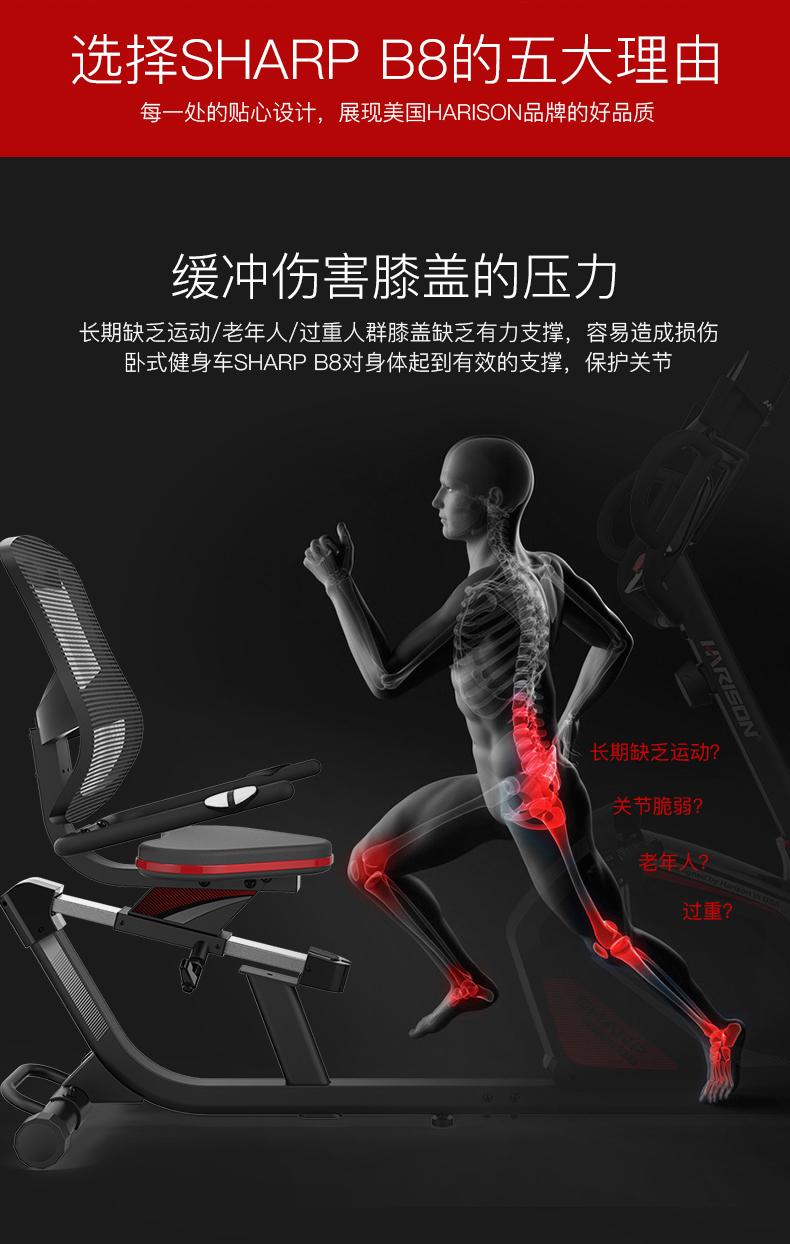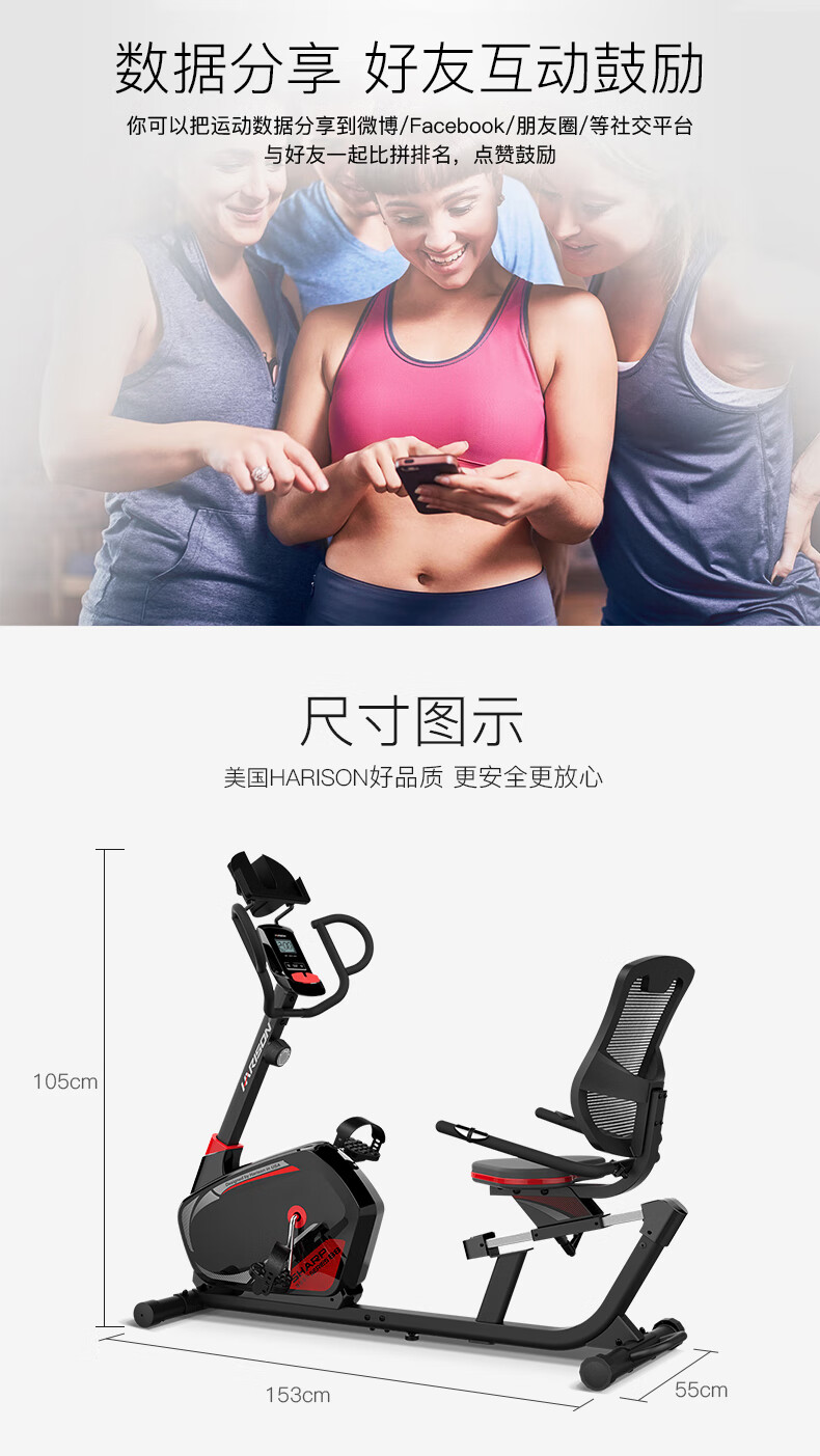 HARISON Hanchen Horizontal Exercise Bike Household Silent Elderly Indoor Bike Spinning Bike Sports Fitness Equipment SHARP B8eco