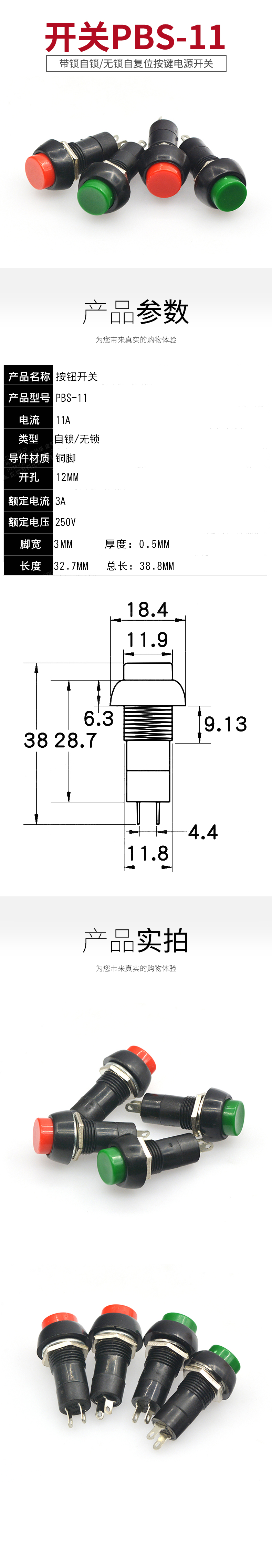 TaoTimeClub button switch PBS-11 direct key with locking self-locking/unlocked self-resetting button power switch, opening 12MM, no lock, red 2 pcs