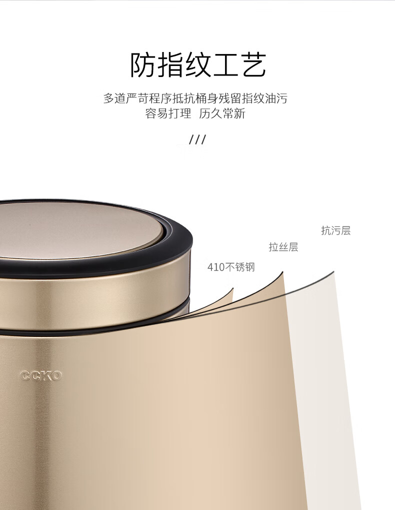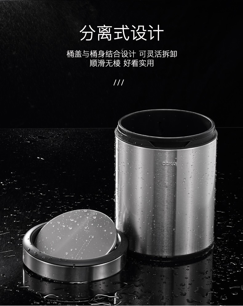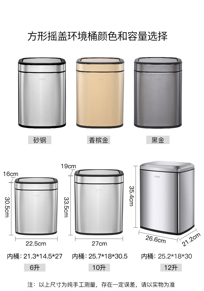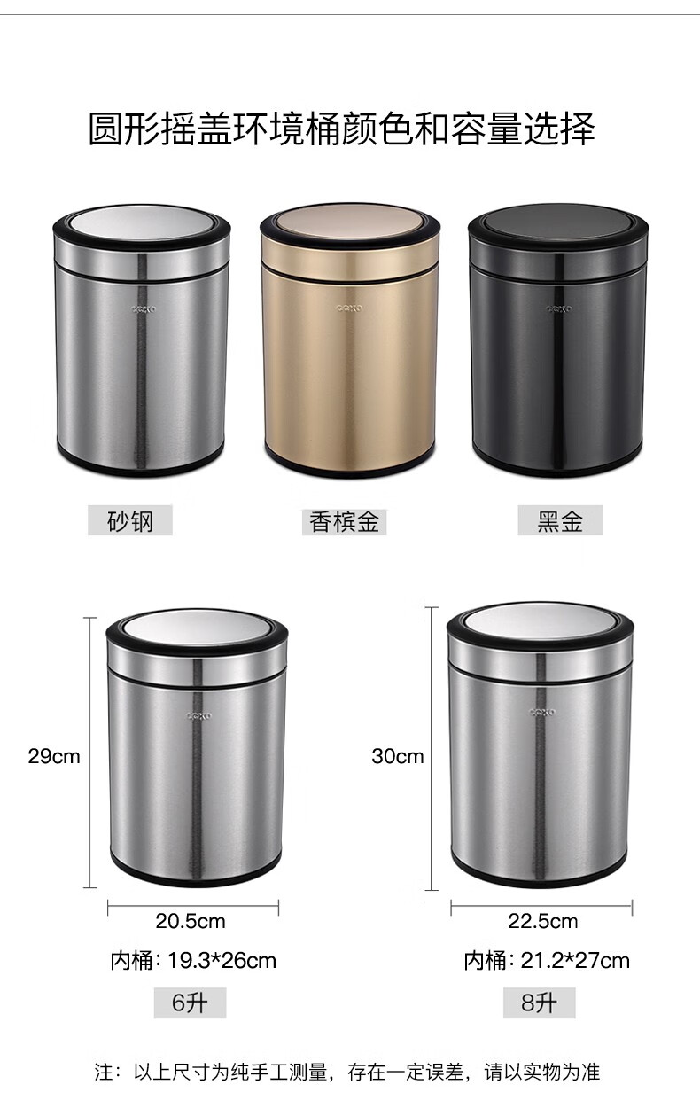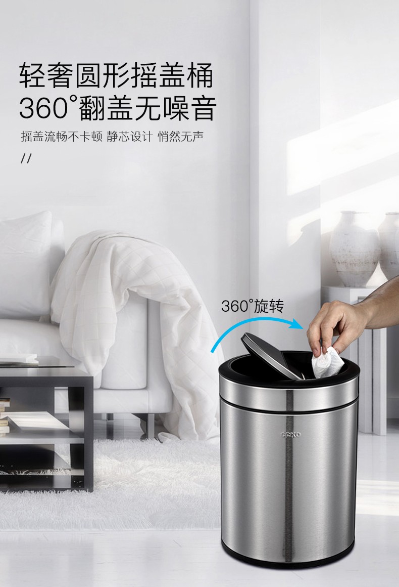 CCKO trash can household bathroom large living room bedroom commercial toilet simple flip-top kitchen trash can with lid square swing lid 6L sand steel (9908)
