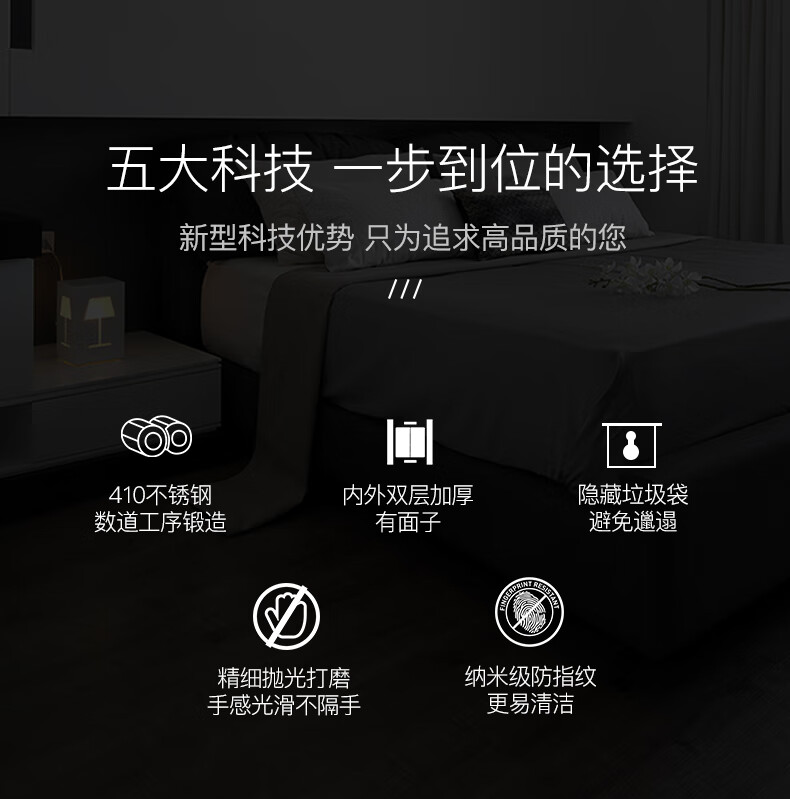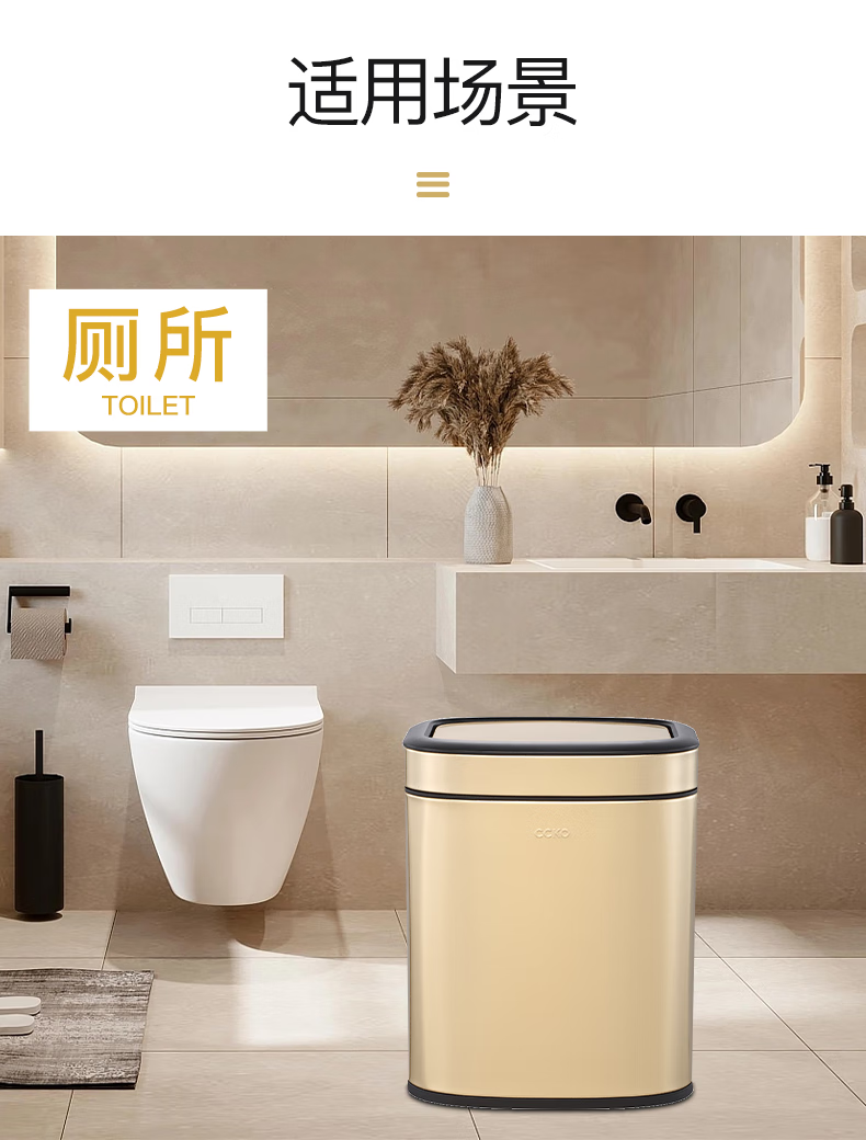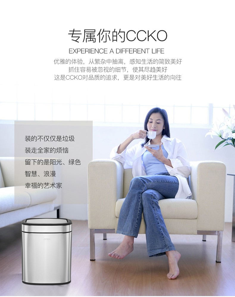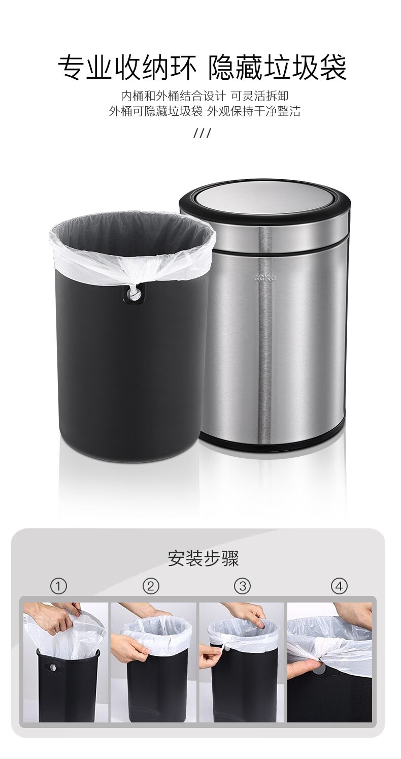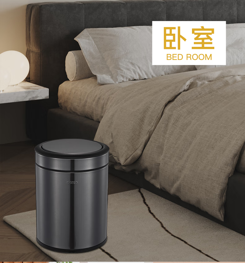 CCKO trash can household bathroom large living room bedroom commercial toilet simple flip-top kitchen trash can with lid square swing lid 6L sand steel (9908)