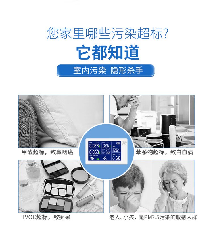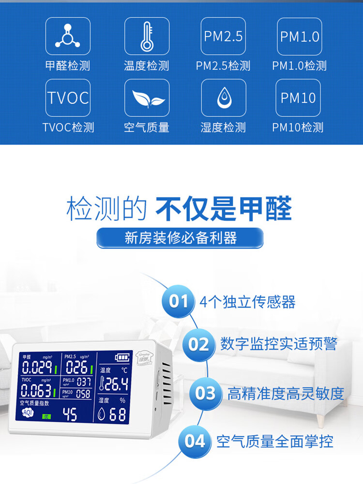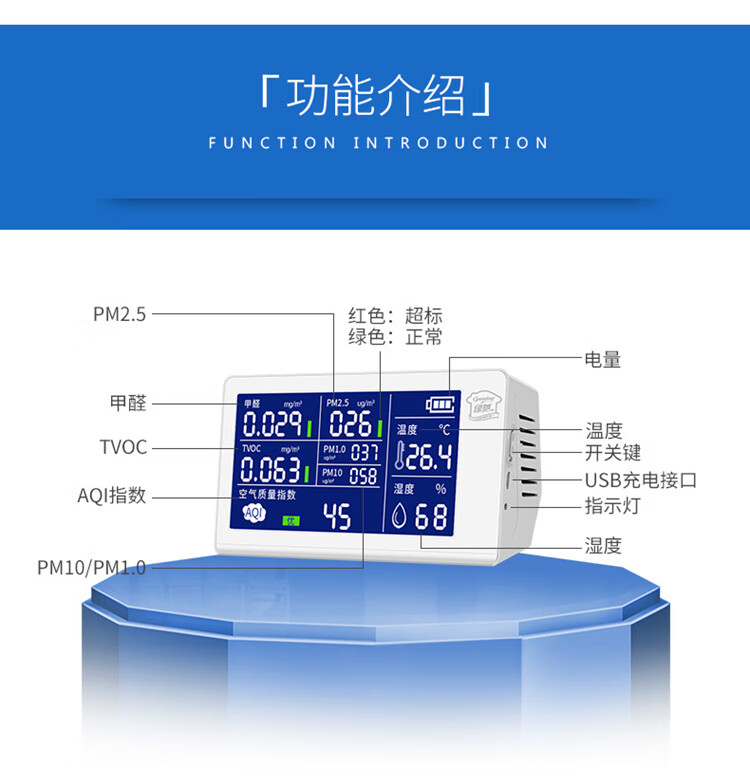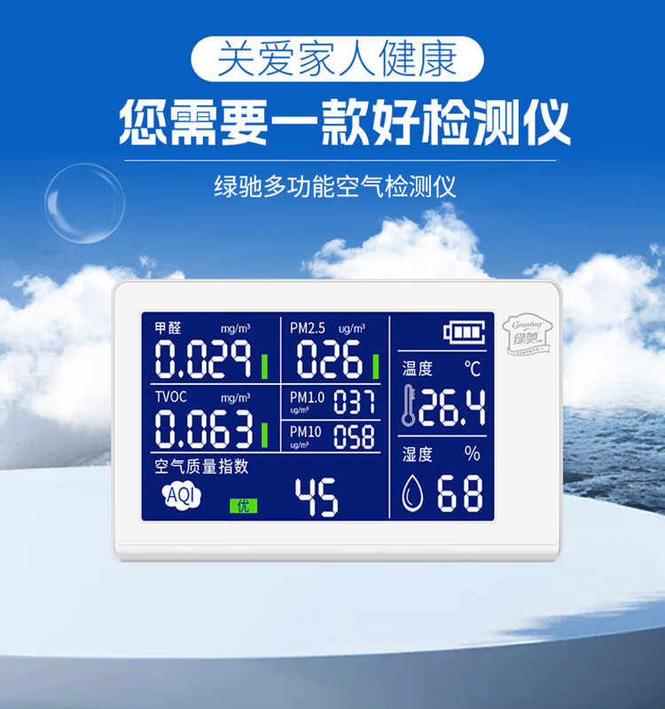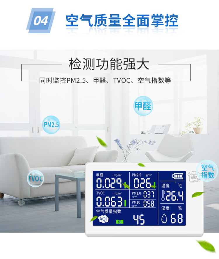 Greenchi 8-in-1 formaldehyde detection instrument professional pm2.5 air quality detection tvoc benzyl alcohol test box temperature and humidity