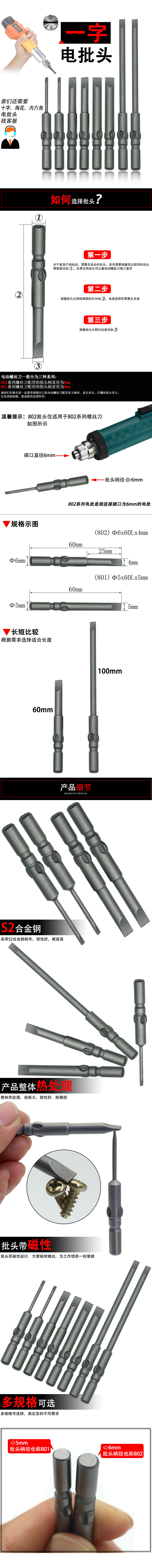 Yubilong electric bit, one-word electric screwdriver bit, screwdriver bit, electric bit with magnetic 5mm 6mm 5*60mm long*2.5 one-word (single)