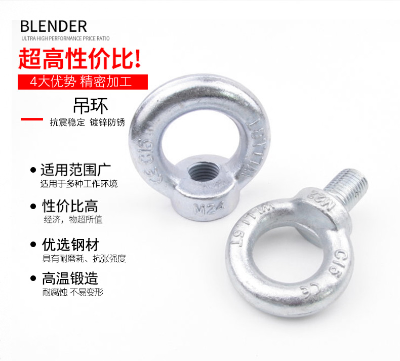 Jishuo eye bolt 304 galvanized British eye nut eye screw lifting eye/hanging nut galvanized fine tooth eye hanging wire M64 (16.0T)