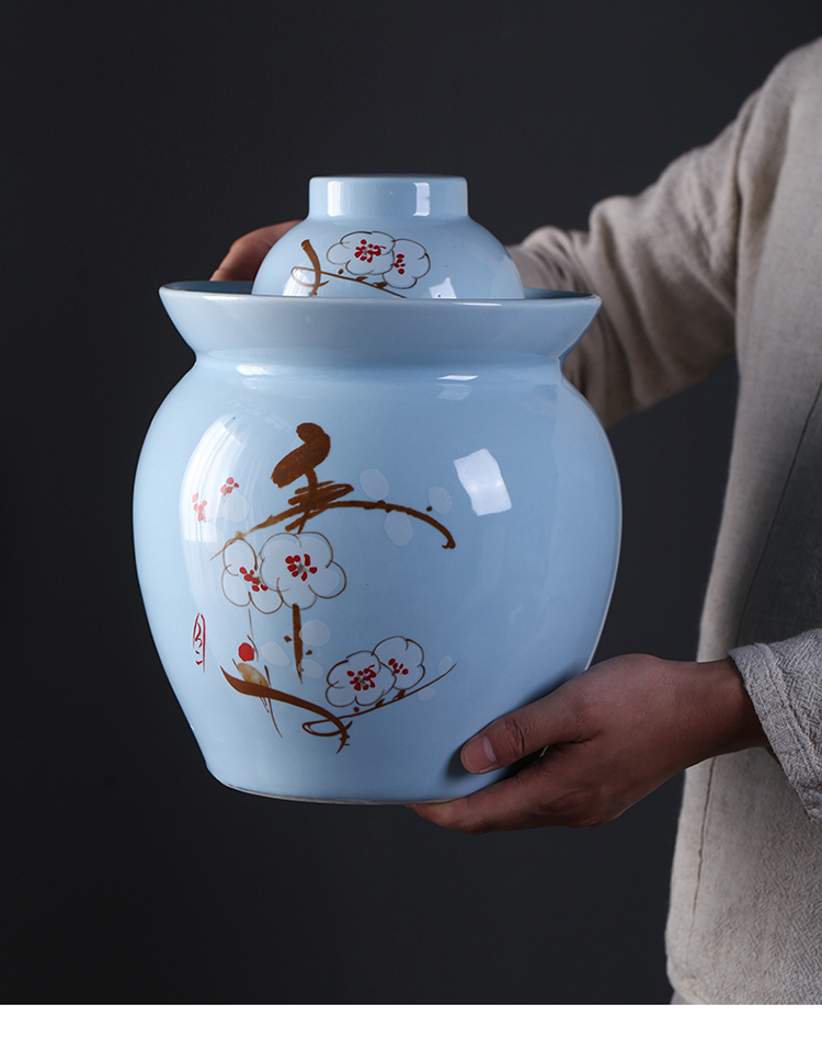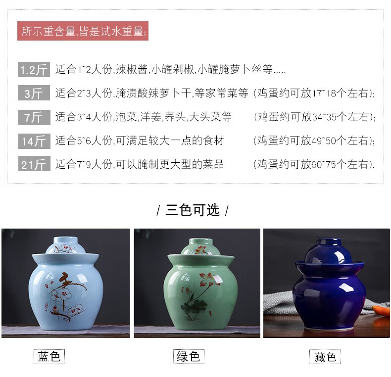 Chengqi kimchi jar ceramic household pickle jar sealed Sichuan kimchi jar Jingdezhen kimchi jar pickle jar 1.2 catties - yellow persimmon (no gifts)