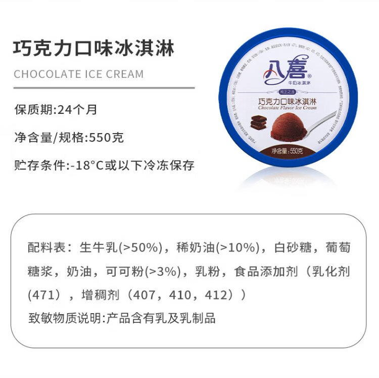 Baxi ice cream chocolate flavor 550g*1 barrel family size raw milk ice cream barrel