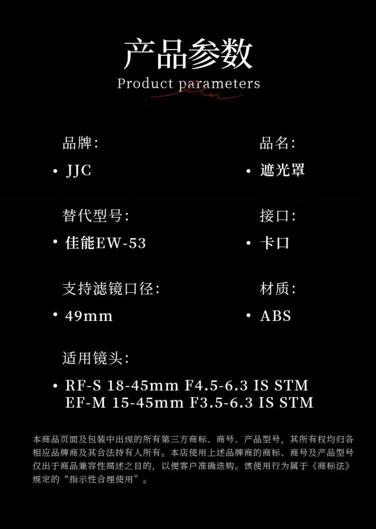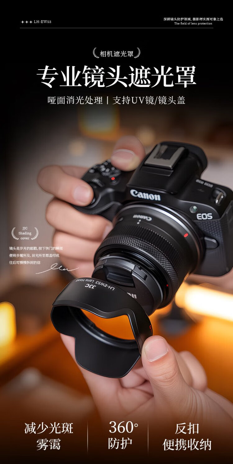 JJC is suitable for Canon RF-S 18-45 hood 49mm lens R10 R50 R100 camera accessories EF-M 15-45 lens m50 second generation m200 m6mark2