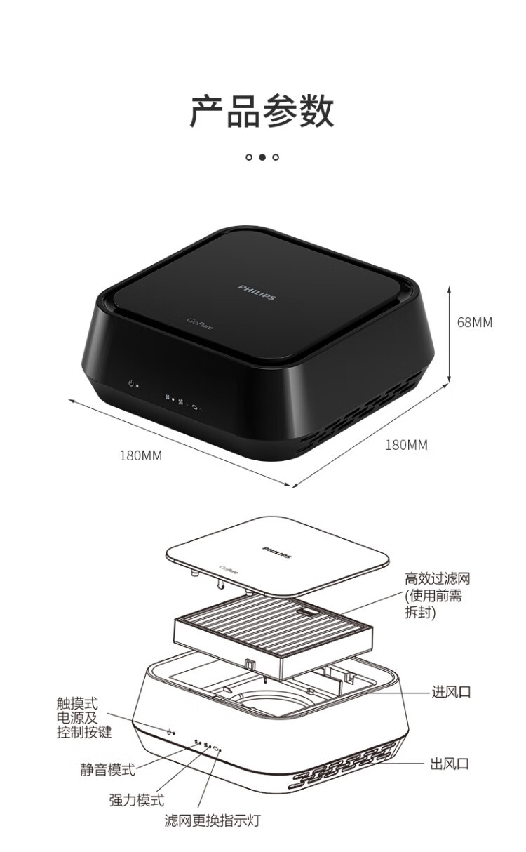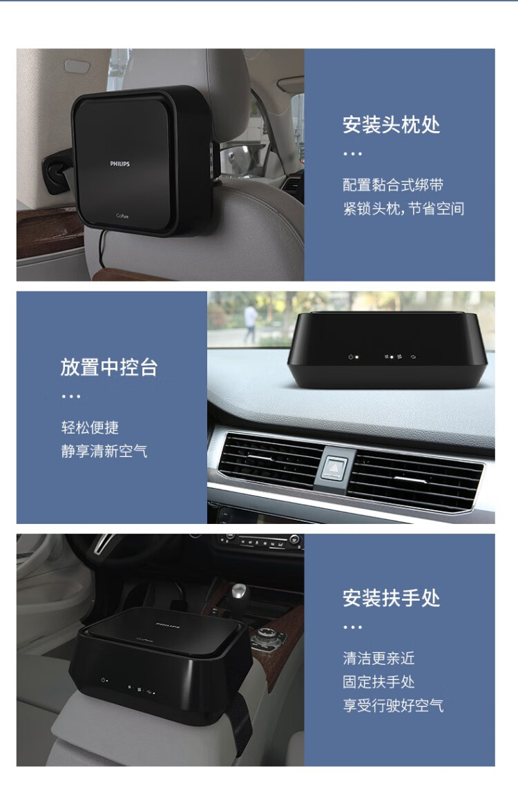 Philips (PHILIPS) car air purifier HEPAHESA removes PM2.5 new car odor and removes formaldehyde GP5202