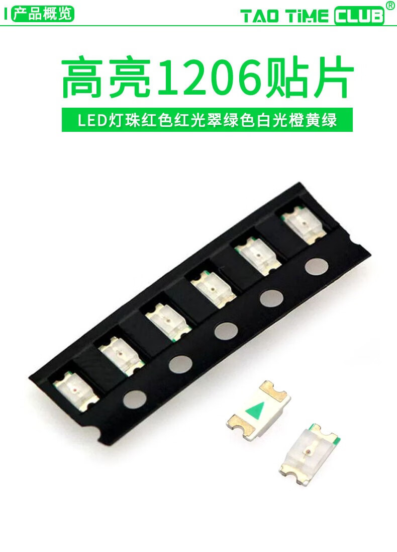 TaoTimeClub High-brightness 1206 SMD LED lamp beads red red light green white light orange yellow green red blue light 1206 green (20 pieces)