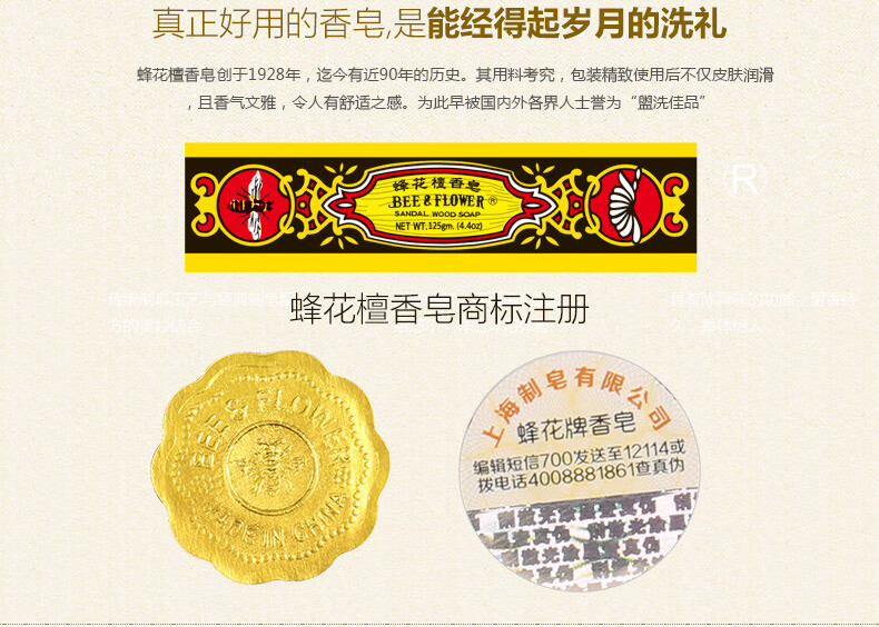 Bee flower sandalwood soap soap old Shanghai domestic product bath shampoo bath soap cleansing soap incense 125*5 pieces of sandalwood (buy 10 pieces and get 1 piece free)