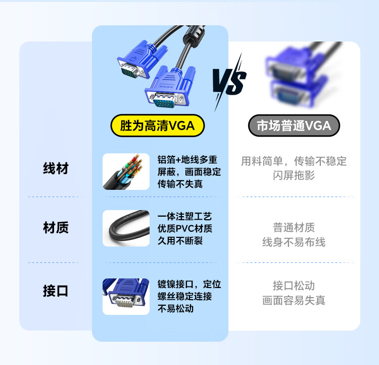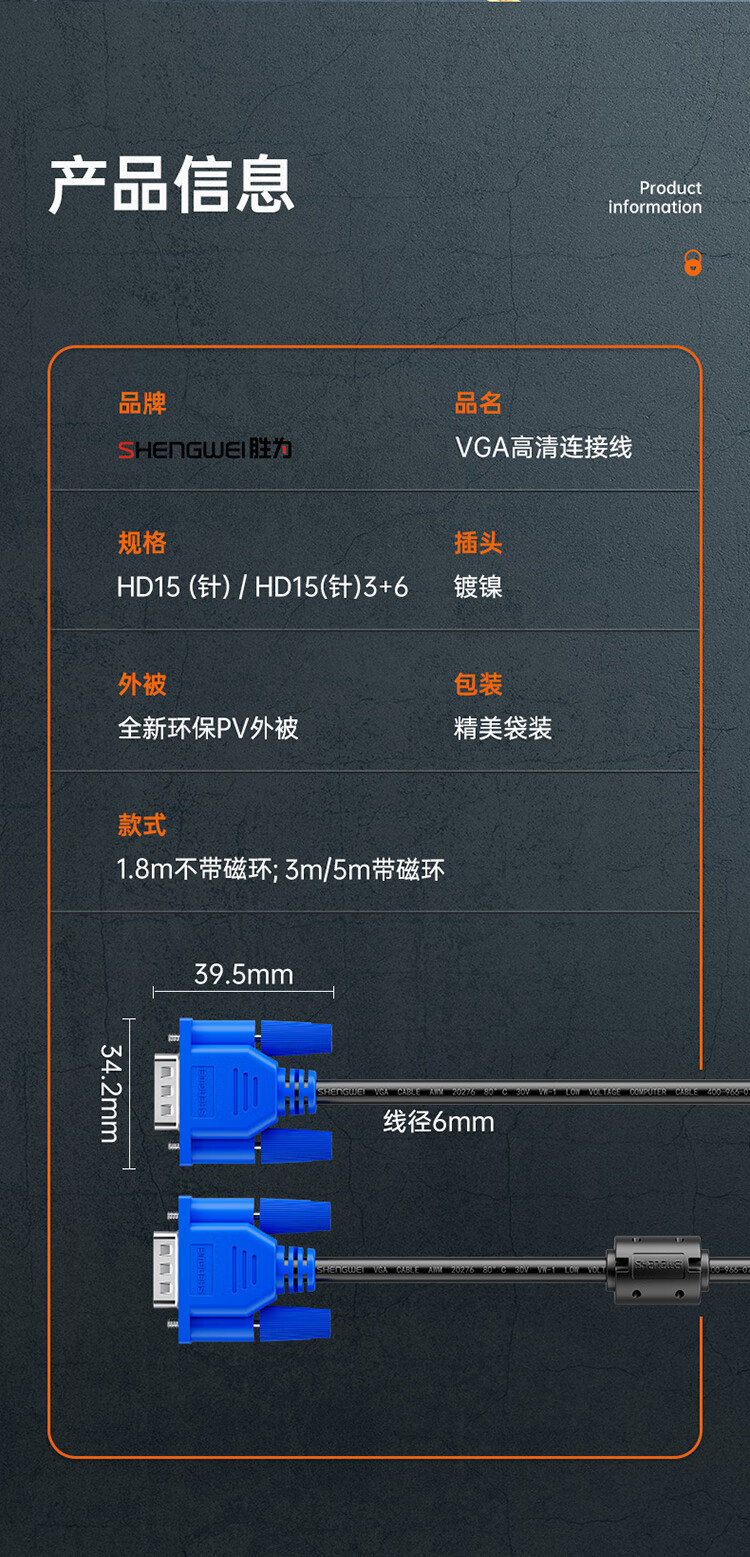 Shengwei VGA cable HD video cable 3 meters computer desktop host connection monitor projector 3+6 core data signal cable VC-3030