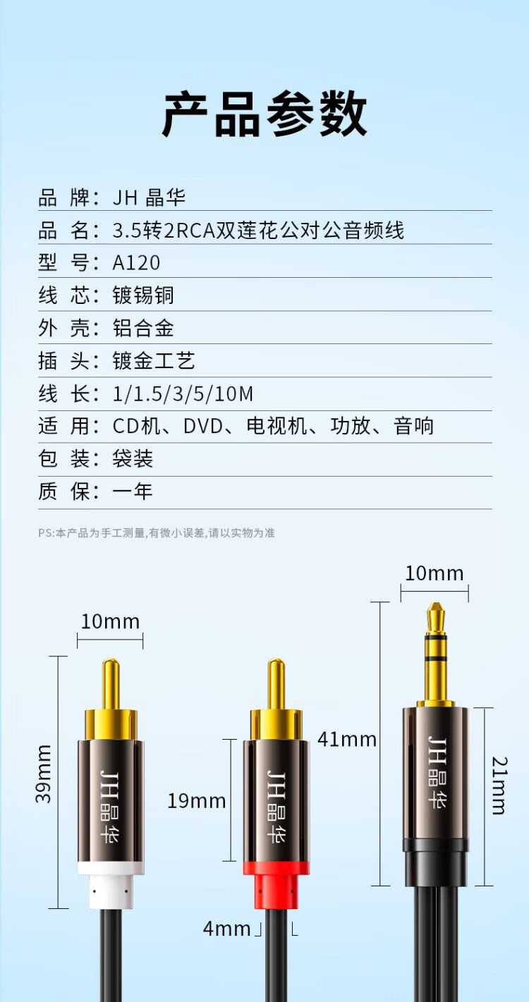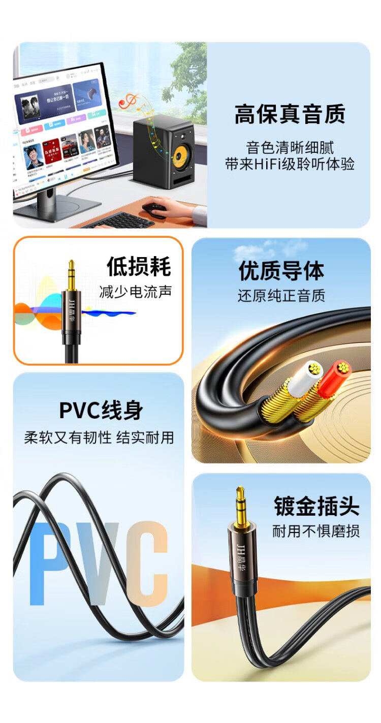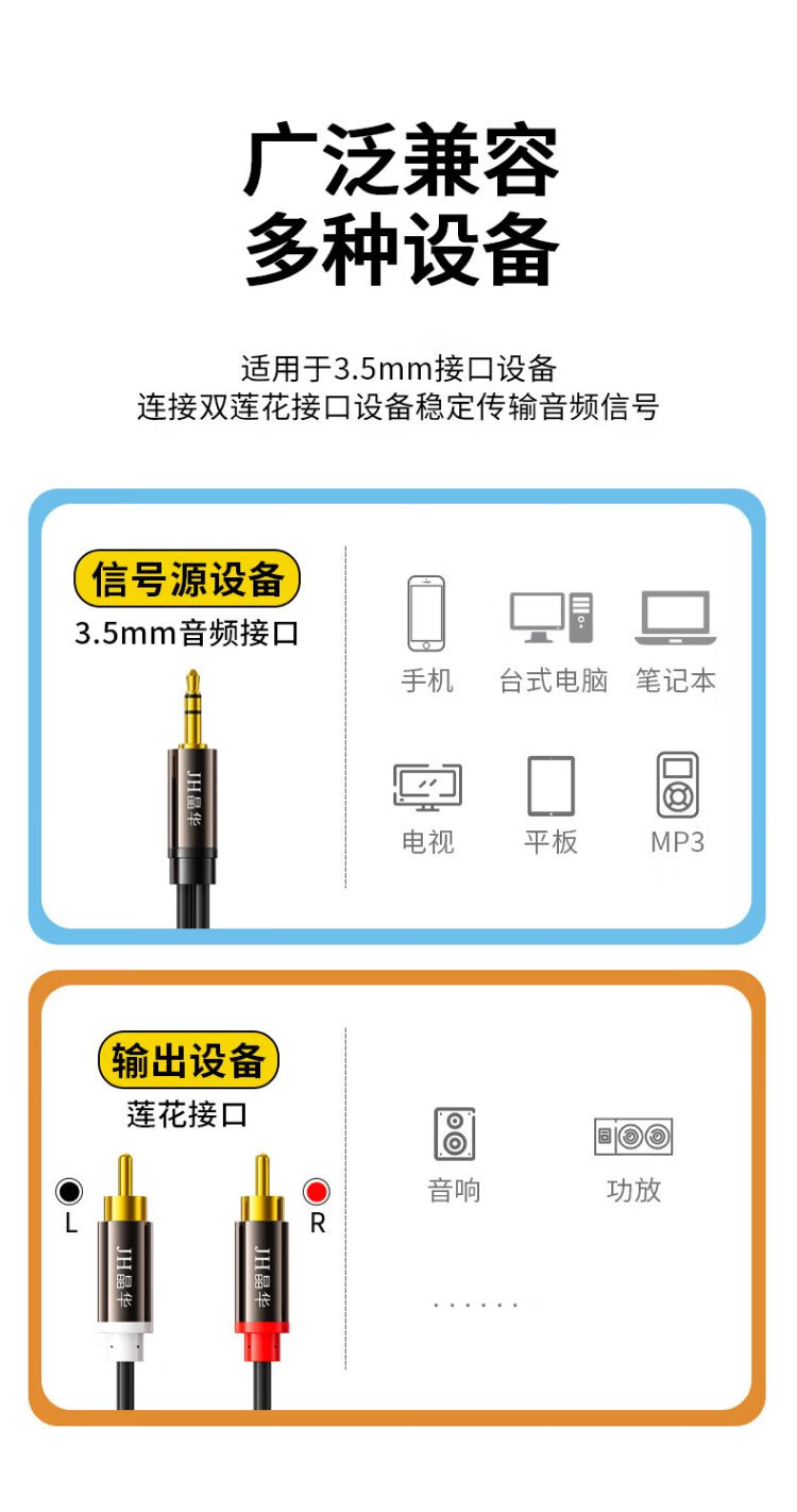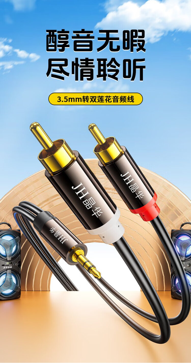 Jinghua 3.5mm to Dual Lotus 1/2 audio cable 2RCA red and white male-to-male connecting cable Mobile phone computer TV audio speaker amplifier conversion cable Black 3 meters A120H