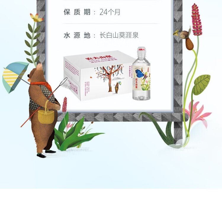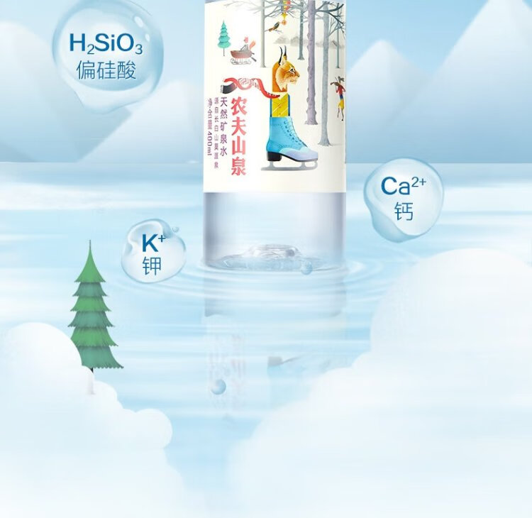 Nongfu Spring Changbai Mountain Drinking Water Sports Cover Drinking Natural Mineral Water 400ml*24 Bottles Full Box