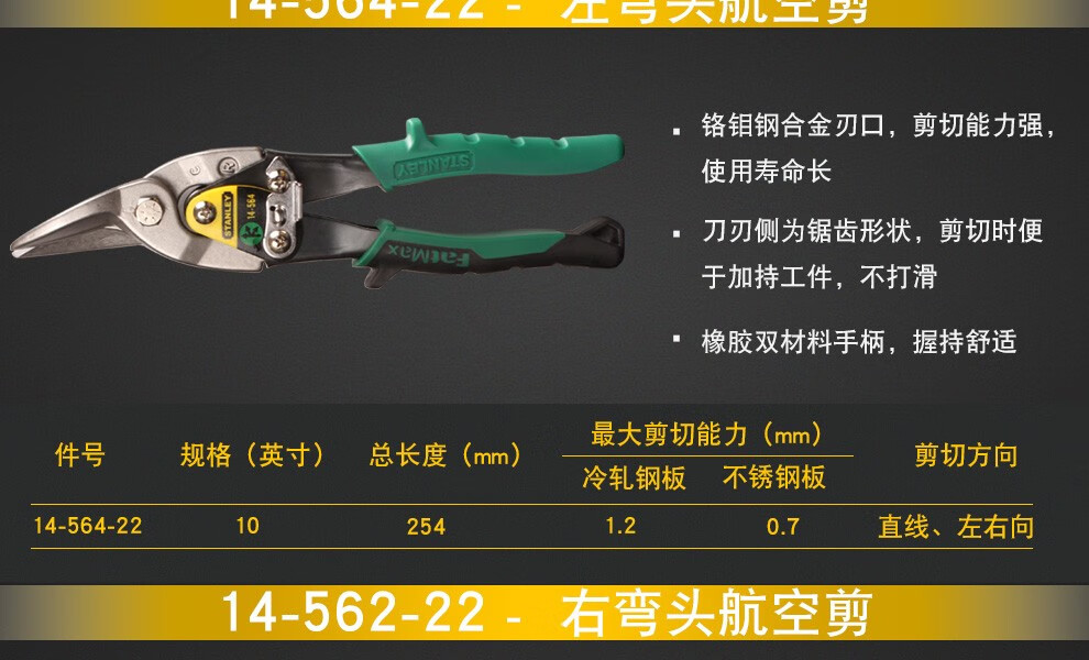 Stanley (STANLEY) aviation scissors, stainless steel iron scissors, industrial grade barbed wire scissors, iron scissors, straight head 14-563-22
