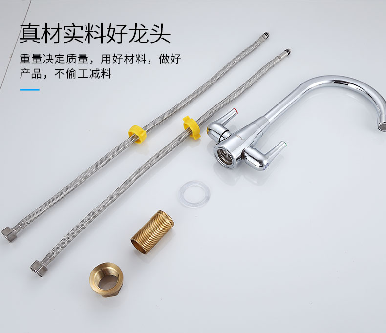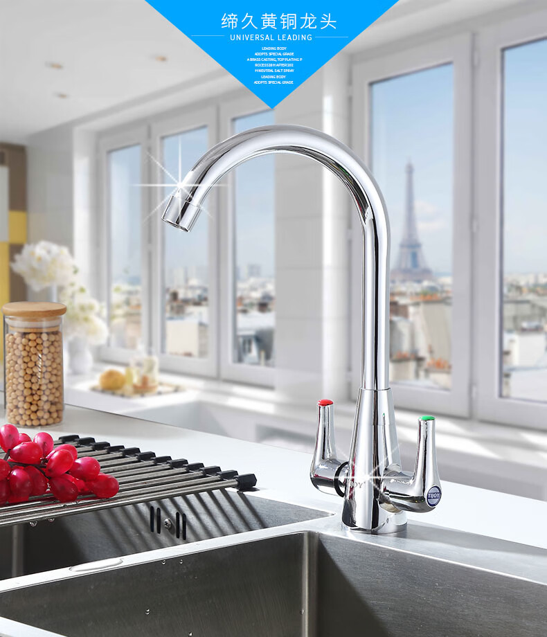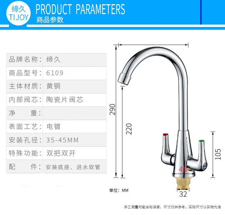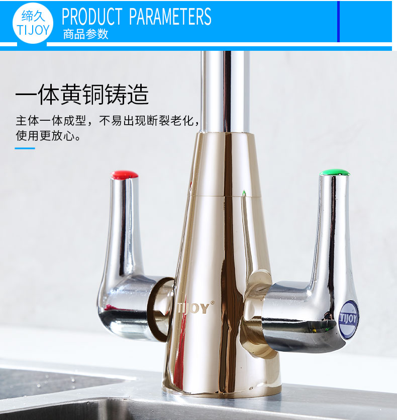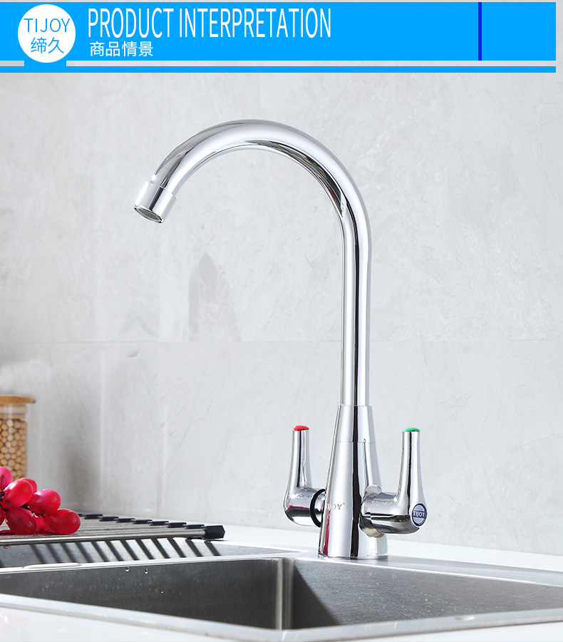 TIJOY copper body copper core kitchen hot and cold faucet sitting sink double handle double control toilet laundry pool bathroom