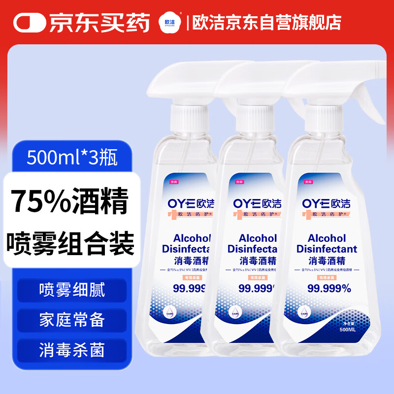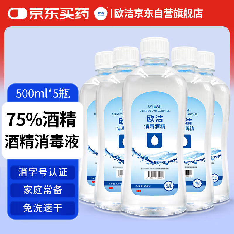 Ojie dealdehyde alcohol disinfectant 500ml (75%+5%) 2 bottles of cleaning, disinfecting, sterilizing, no-rinse quick-drying hand sanitizer