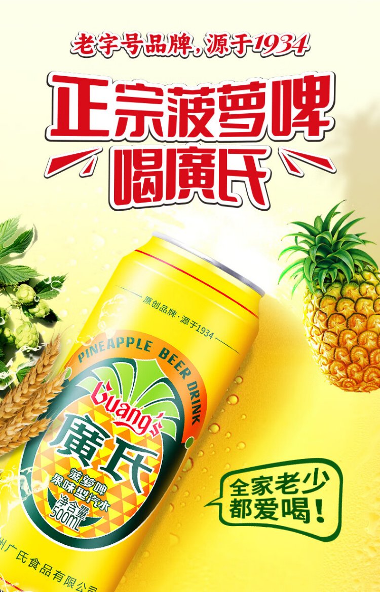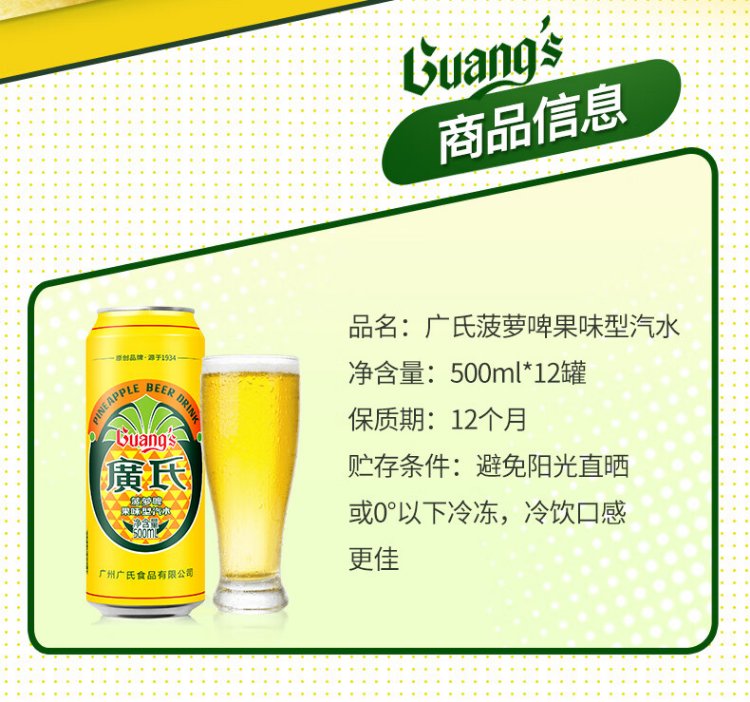 Guang's Pineapple Beer Fruity Beverage 500ml*12 cans of large cans of fruit beer full box soda