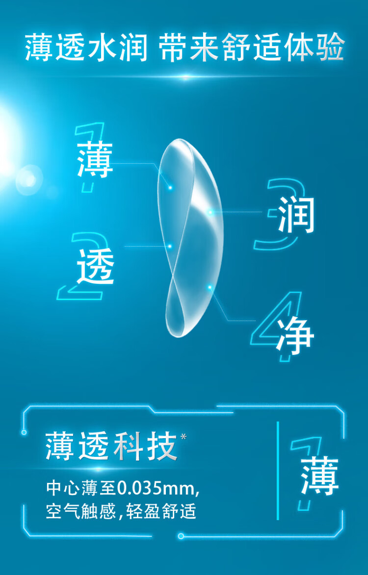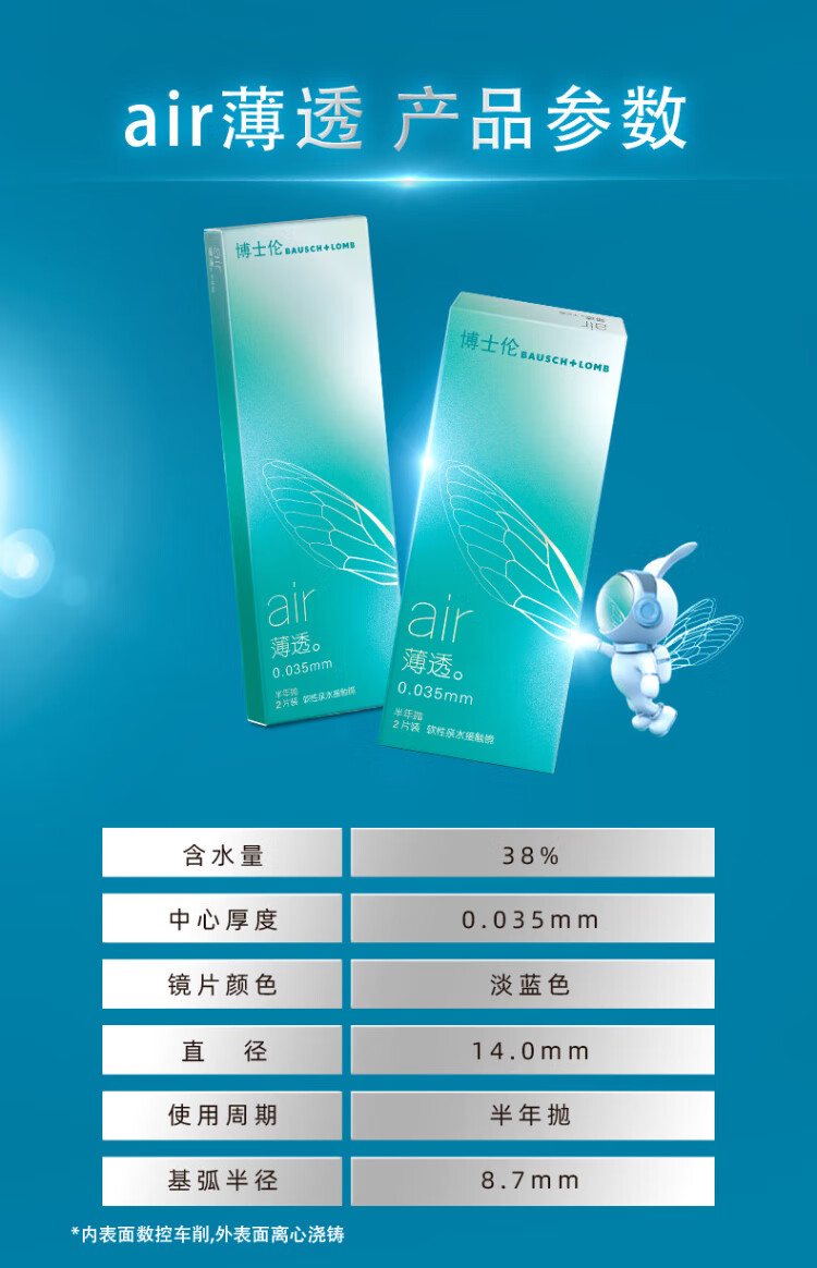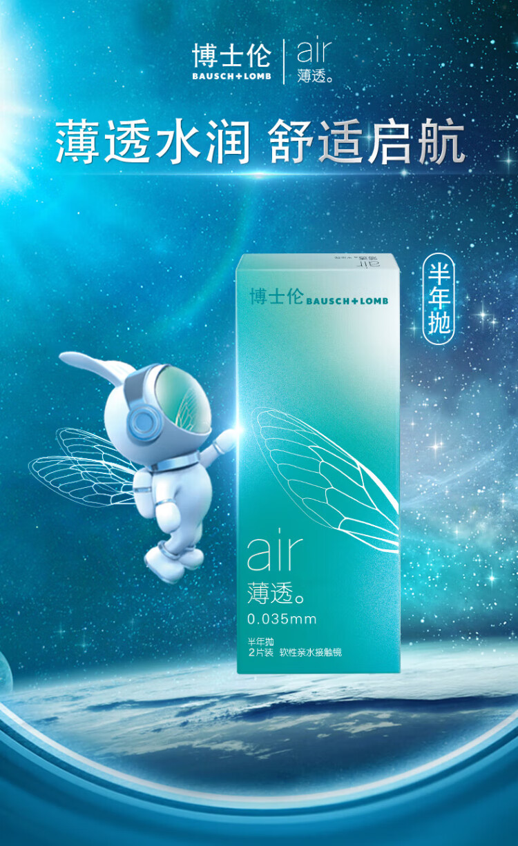 Bausch & Lomb contact lenses half-year disposable air thin transparent 2 pieces moist, light, comfortable, high oxygen permeability transparent myopia lens 450 degrees
