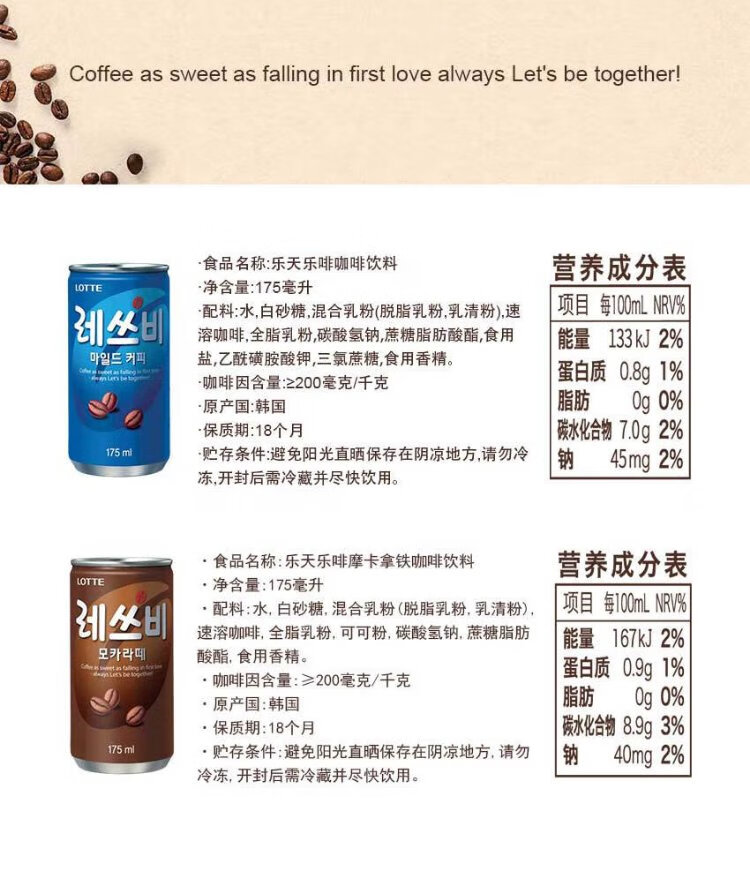LOTTE Coffee Drink 175ml*30 cans, full box, imported from South Korea